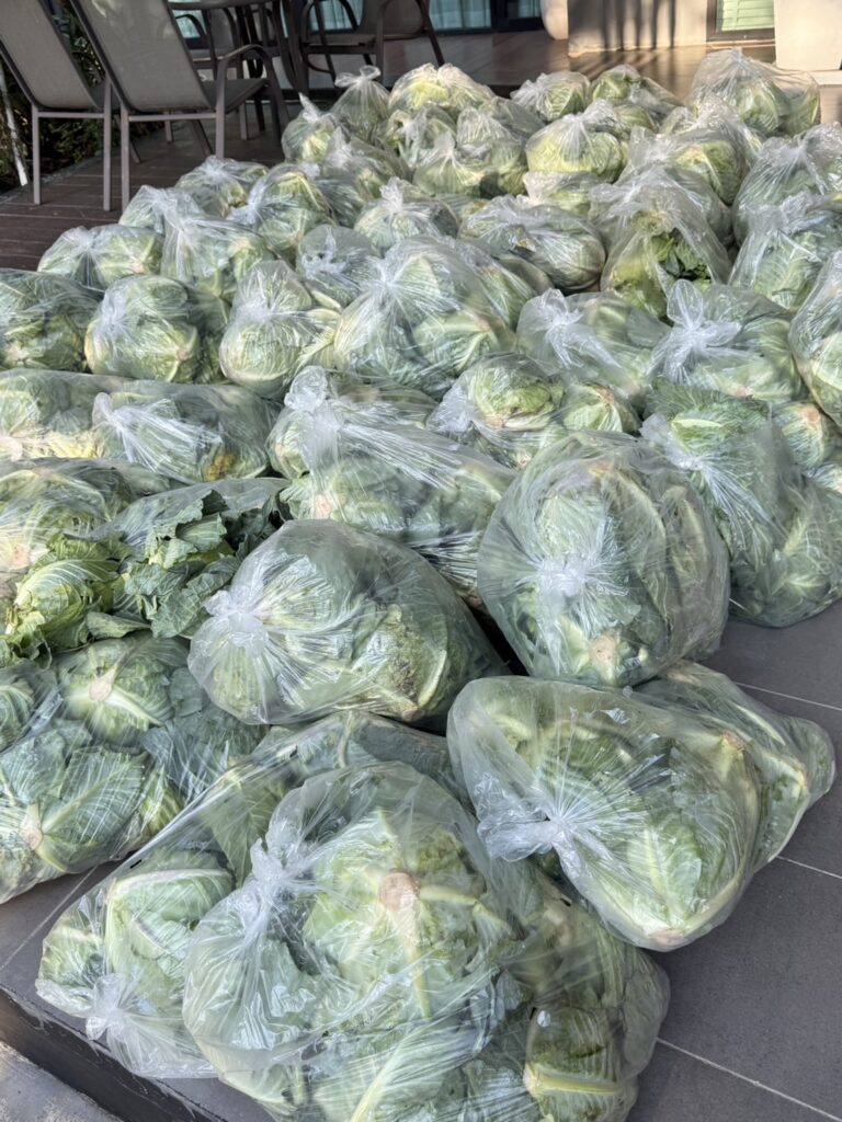 หลังจากทราบข่าวราคากะหล่ำปลีตกต่ำในรอบปีของเกษตรกรชาวสวนในไทย วานนี้ 2 ธันวาคม 2567 ภาคเอกชนนำโดยคุณรุ้ง ธนิภา พุ่มเรือง กรรมการผู้จัดการบริษัทไทยดีเอฟ2564 จำกัด ได้ตั้งจุดรับซื้อกะหล่ำปลีเบื้องต้นจำนวน 2 ตัน ที่ตลาดสี่มุมเมือง เพื่อช่วยเหลือพี่น้องเกษตรกรในสภาวะกะหล่ำปลีล้นตลาด โดยผักกะหล่ำปลีจำนวน 2 ตันที่รับซื้อมาในช่วงเช้าของวานนี้ได้รับการสนับสนุนการขนส่งทั้งหมดจาก คุณณัฐ ณัฐดนัย เจริญลาภนพรัตน์ และคุณกบ อัญญากาณต์ อิงเกียรติกุลณ์ ในการนำมาแจกจ่ายให้กับหน่วยงานต่างๆ โดยได้รับความอนุเคราะห์ที่ดีจากรักษาการผู้บัญชาการตำรวจภูธรภาค1 พล.ต.ท.สุรพล เปรมบุตร ในการตอบรับให้กระจายผักกะหล่ำปลีเพื่อช่วยเหลือเกษตรกรภายในกองกำกับการตำรวจภูธรภาค1 ได้ ซึ่งพล.ต.ท. สุรพล เปรมบุตร ให้เหตุผลว่า ถือเป็นโอกาสที่ดีที่ตำรวจภูธรภาค1 ได้เป็นส่วนหนึ่งในการสนันสนุนและช่วยเหลือเกษตรกรไทย นอกจากนี้ยังถือว่าเป็นการแบ่งเบาภาระค่าใช้จ่ายครัวเรือนของข้าราชการตำรวจอีกด้วย ทั้งนี้ พล.ต.ท.สุรพล เปรมบุตรให้เกียรติรับมอบผักกะหล่ำปลีพร้อมคณะข้าราชการตำรวจในกองกำกับการตำรวจภูธรภาค1 จำนวน 500 กิโลกรัม หน่วยงานต่อมาที่ตอบรับการช่วยกระจายผักกะหล่ำปลีในครั้งนี้คือ กรมกิจการพลเรือนทหารบก กองทัพบก โดย พล.ท.จินตมัย ชีกว้าง เจ้ากรมกิจการพลเรือนทหารบก ได้ส่งตัวแทนของกองทัพบกรับมอบและนำไปกระจายต่อให้กับข้าราชการทหารบกจำนวน 500 กิโลกรัม สำหรับสำนักงานเขตคลองสามวาก็เป็นอีกหนึ่งหน่วยงานที่ให้ความร่วมมืออย่างดีในการกระจายผักกะหล่ำปลี อีกทั้ง ผอ.ธัญนภัส มณีศรี ผู้อำนวยการสำนักงานเขตคลองสามวาพร้อมคณะเจ้าหน้าที่บุคคลากรได้ให้เกียรติรับมอบผักกะหล่ำปลีจำนวน 300 กิโลกรัม และสุดท้ายคุณรุ้ง ธนิภา ยังได้รับการสนับสนุนเป็นอย่างดีในการแจกจ่ายผักกะหล่ำปลีต่อให้ถึงมือของประชาชนในชุมชนต่างๆของพื้นที่เขตคันนายาวและเขตบึงกุ่ม จากกำลังหลักอย่าง คุณก้อย สก.ชญาดา วิภัติภูมิประเทศ