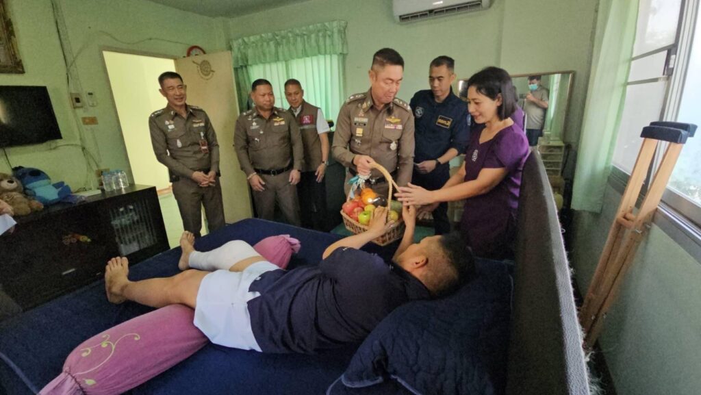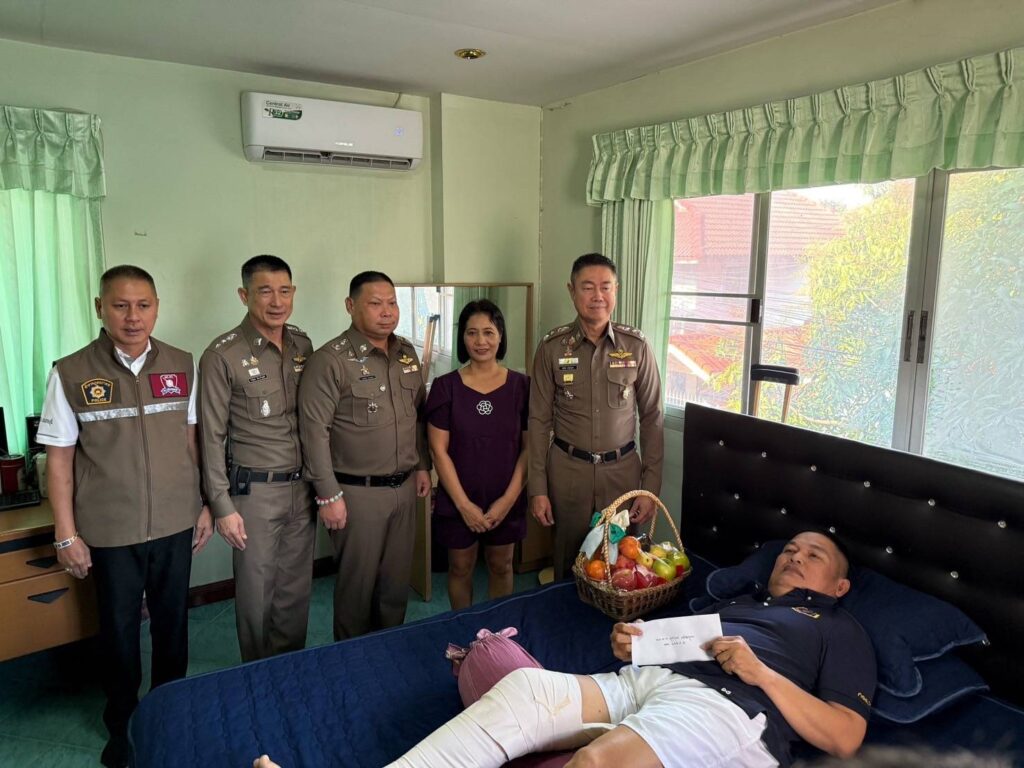 พล.ต.ท.สุรพล เปรมบุตร รรท.ผบช.ภ.1 พร้อมด้วย พล.ต.ต.ยุทธนา จอนขุน ผบก.ภ.จ.ปทุมธานี และเจ้าหน้าที่ตำรวจ สภ.เมืองปทุมธานี ร่วมตรวจเยี่ยมพร้อมมอบกระเช้าผลไม้ และเงินช่วยเหลือค่ารักษาพยาบาลเพื่อเป็นการสร้างขวัญกำลังใจให้แก่ ร.ต.ท.วิฑูรย์ จันดี รอง สว.(จร).สภ.เมืองปทุมธานี ซึ่งได้รับบาดเจ็บขณะปฏิบัติหน้าที่ อำนวยความสะดวกด้านการจราจร ให้กับสมาคมกีฬาจักรยานจังหวัดปทุมธานี ในการแข่งขันจักรยานชิงแชมป์ของจังหวัดปทุมธานี