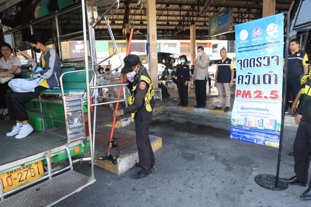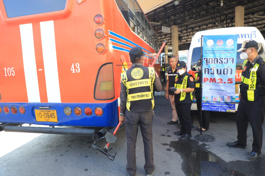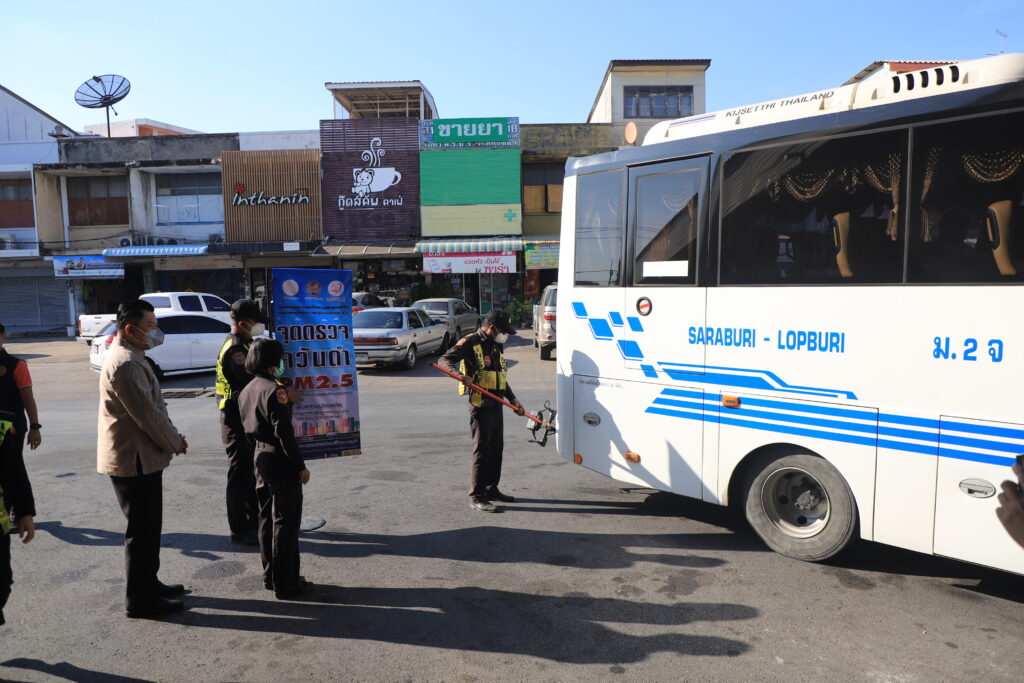 สำนักงานขนส่งจังหวัดลพบุรี จัดชุด ตรวจวัดค่าควันดำ สุ่มตรวจ รถรับ-ส่ง ผู้โดยสารรถโดยสารสาธารณะ ในสถานีขนส่งจังหวัดลพบุรี ตามมาตรการของจังหวัดลพบุรี เพื่อลดปัญหาฝุ่นละออง PM 2.5 ตามที่รัฐบาลมีนโยบายเข้มงวดการตรวจจับรถควันดำ ตรวจจับ ปรับจริง ห้ามใช้รถควันดำ และบังคับใช้บทลงโทษสูงสุดเพื่อลดฝุ่น PM 2.5 ทั้งส่วนกลางและส่วนภูมิภาค โดยมี นายปรัชญา เปปะตัง รองผู้ว่าราชการจังหวัดลพบุรี พร้อมด้วย นางสาวอารีย์ ธัญญเจริญ ขนส่งจังหวัดลพบุรี พ.อ.ภาวัต อ่อนศรี หัวหน้ากลุ่มงานประสานความมั่นคง ข้าราชการ เจ้าหน้าที่ ร่วมสังเกตการณ์ ซึ่งจากการลงพื้นที่ตรวจวัดค่าควันดำ รถรับ-ส่ง ผู้โดยสารรถโดยสารสาธารณะ ของสำนักงานขนส่งจังหวัดลพบุรี ไม่พบรถโดยสารที่มีค่าควันเกินกว่าค่ามาตรฐานที่กำหนด