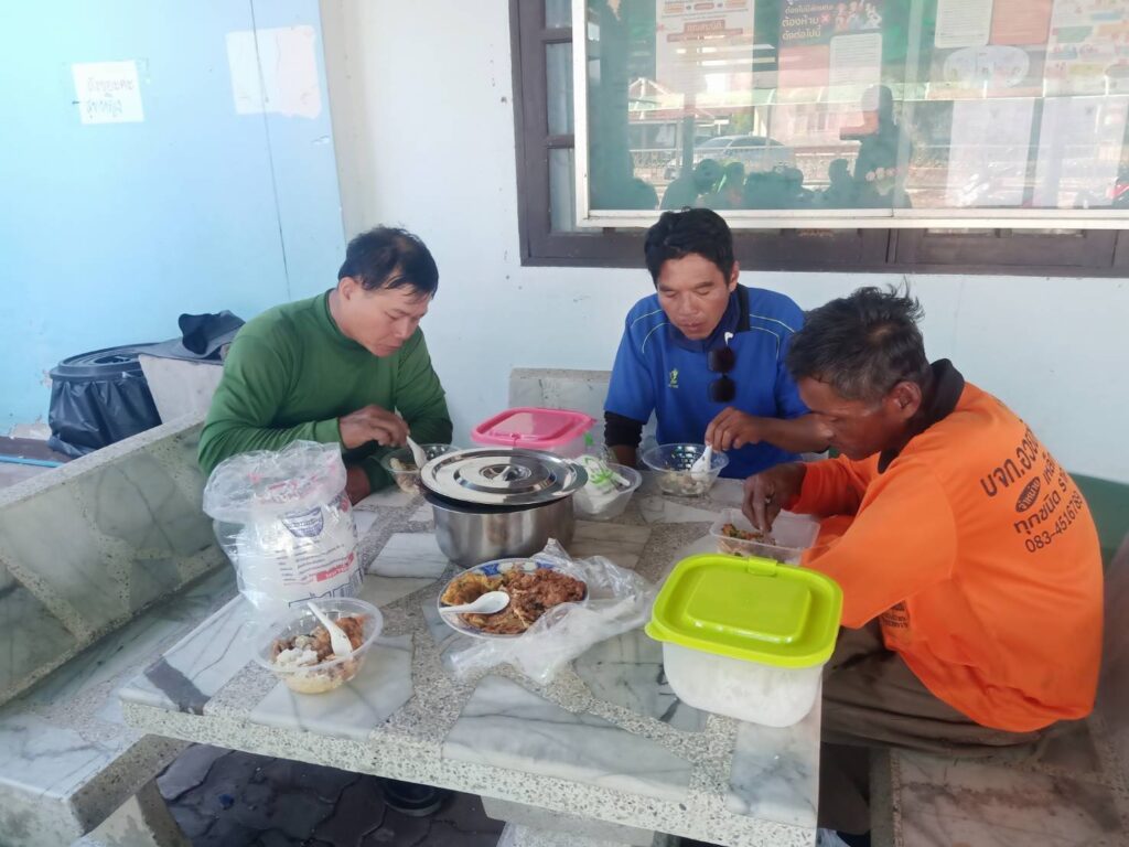 น.ร่วมรับประทานอาหารเที่ยงกับช่างที่มาปรับปรุงเปลี่ยนหลังคาสำนักทะเบียน เพือความเป็นกันเอง อร่อยเหมือนเดิม