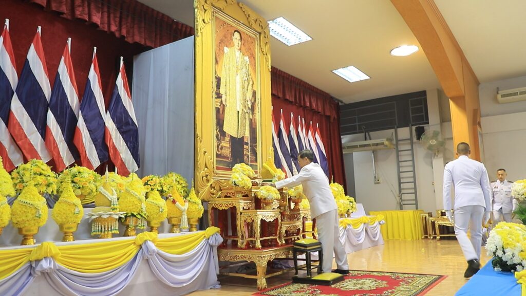 จากนั้นเวลา 08.00 น. ผู้ว่าราชการจังหวัดลพบุรี พร้อมด้วยนายกเหล่ากาชาดจังหวัดลพบุรี ข้าราชการ ตุลาการ ศาล ทหาร ตำรวจ และประชาชนชาวจังหวัดลพบุรี ร่วมประกอบพิธีวางพานพุ่มดอกไม้เบื้องหน้าพระบรมฉายาลักษณ์พระบาทสมเด็จพระบรมชนกาธิเบศร มหาภูมิพลอดุลยเดชมหาราช บรมนาถบพิตร เพื่อน้อมรำลึกในพระมหากรุณาธิคุณขิงพระองค์ที่ทีต่อประชาชนชาวไทย