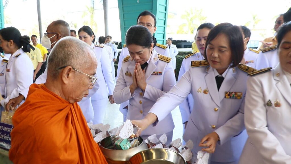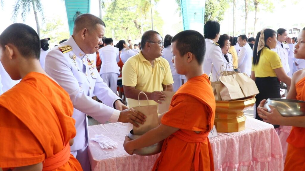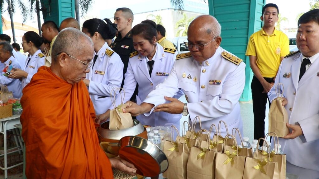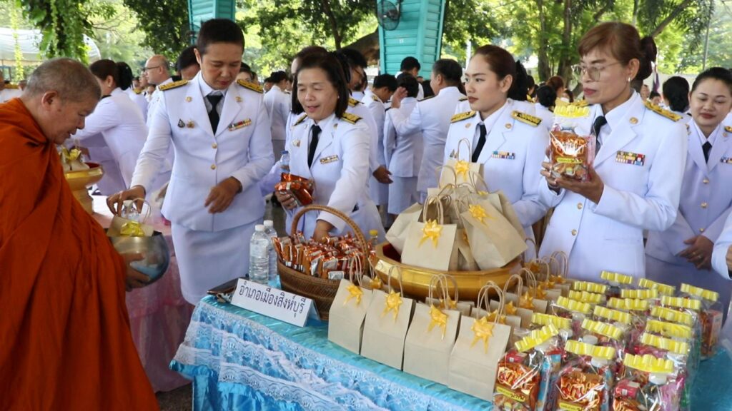 วันที่ 5 ธันวาคม 2567 เวลา 07.30 น. ณ อาคารเอนกประสงค์สนามกีฬาจังหวัดสิงห์บุรี นายสุเมธ ธีรนิติผู้ว่าราชการจังหวัดสิงห์บุรีพร้อมนางวาสนา ธีรนิตินายกเหล่ากาชาดจังหวัดสิงห์บุรี หัวหน้าศาล รองผู้ว่าราชการจังหวัดสิงห์บุรี หัวหน้าส่วนราชการ ทหาร ตำรวจ และข้าราชการ ร่วมประกอบพิธีสวดพระพุทธมนต์และ ทำบุญตักบาตรข้าวสารอาหารแห้ง พระสงฆ์และสามเณร 89 รูป ถวายเป็นพระราชกุศล เนื่องในวันคล้ายวันพระราชสมภพพระบาทสมเด็จพระบรมชนกาธิเบศร มหาภูมิพลอดุลยเดชมหาราช บรมนาถบพิตร วันชาติ และวันพ่อแห่งชาติ ต่อจากนั้น นายสุเมธ ธีรนิติผู้ว่าราชการจังหวัดสิงห์บุรีเป็นประธานในพิธีวางพานพุ่มดอกไม้ถวายราชสักการะน้อมรำลึกในพระมหากรุณาธิคุณพระบาทสมเด็จพระบรมชนกาธิเบศร มหาภูมิพลอดุลยเดชมหาราช บรมนาถบพิตร วันชาติ และวันพ่อแห่งชาติ 5 ธันวาคม 2567 ตามลำดับ