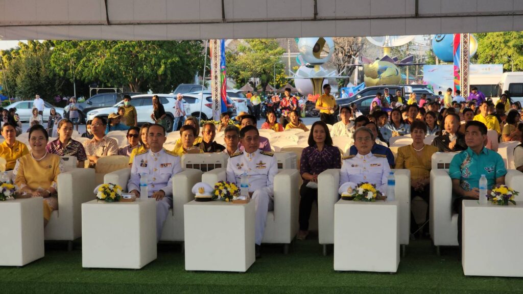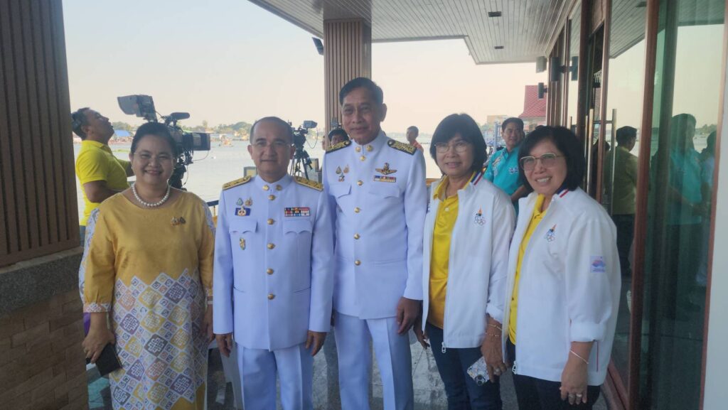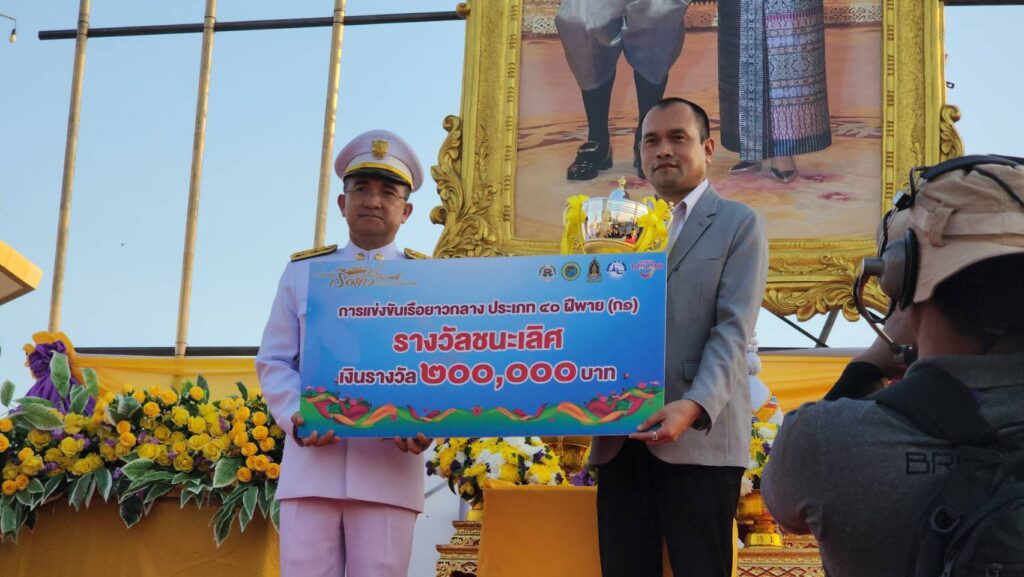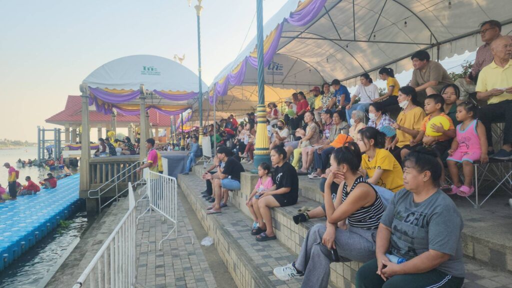ผู้บริหารองค์การบริหารส่วนจังหวัดผทถมธานี หัวหน้าส่วนราชการ คณะกรรมการจัดงาน ผู้เข้าแข่งขันพายเรือยาวและประชาชนร่วมพิธี