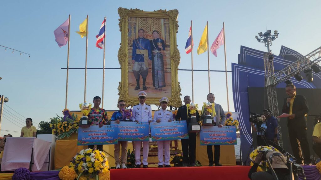 เมื่อเวลา 17.00 น. วันที่ 5 ธันวาคม 2567 ที่ ริมแม่น้ำเจ้าพระยา บริเวณสวนเทพปทุม ตำบลบางปรอก อำเภอเมืองปทุมธานี จังหวัดปทุมธานี นายสมคิด จันทมฤก ผู้ว่าราชการจังหวัดปทุมธานี เป็นประธานมอบรางวัลการแข่งขันเรือยาวประเพณี จังหวัดปทุมธานี ชิงถ้วยพระราชทานพระบาทสมเด็จพระเจ้าอยู่หัว และสมเด็จพระนางเจ้าฯ พระบรมราชินี ประจำปี 2567 พร้อมด้วย พลตำรวจโท คำรณวิทย์ ธูปกระจ่าง นายกองค์การบริหารส่วนจังหวัดปทุมธานี