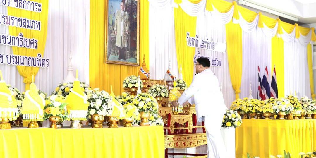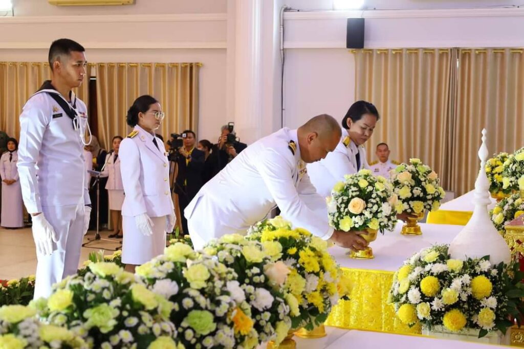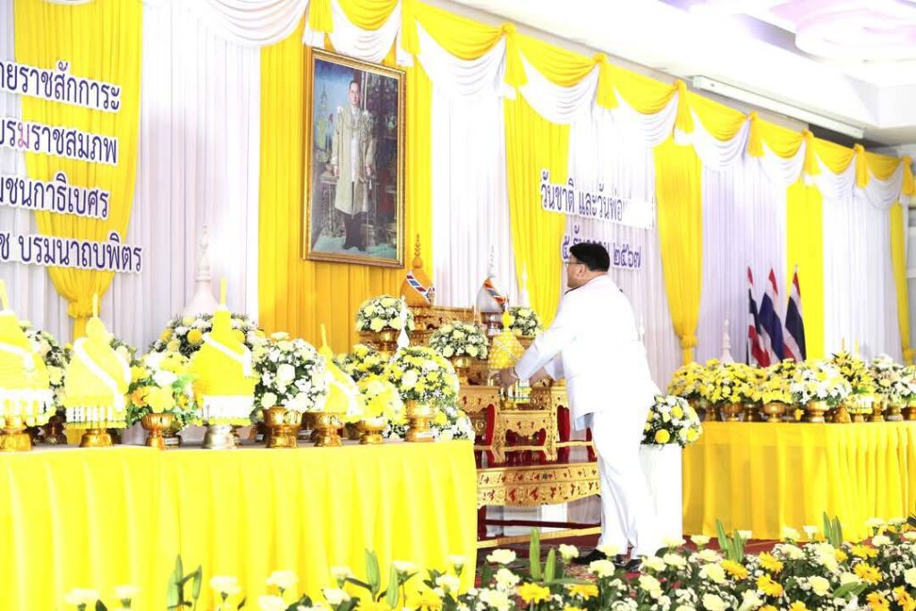 โดยผู้ว่าราชการจังหวัดสตูล ได้วางพานพุ่มดอกไม้เบื้องหน้าพระบรมฉายาลักษณ์พระบาทสมเด็จพระบรมชนกาธิเบศร มหาภูมิพลอดุลยเดชมหาราช บรมนาถบพิตร พร้อมกล่าวน้อมรำลึกในพระมหากรุณาธิคุณอันล้นพ้นอย่างหาที่สุดมิได้ของพระองค์ท่าน ที่ตลอดระยะเวลา 70 ปี แห่งการครองราชย์ พระองค์ทรงมีทรงปฏิบัติตามพระราชปณิธานด้วยพระราชหฤทัยตั้งมั่น ทรงครองแผ่นดินโดยธรรม เพื่อประโยชน์สุขของอาณาประชาราษฎร์ ทรงเป็นต้นแบบการพัฒนาดิน ป่า และ น้ำ ตลอดจนโครงการพระราชดำริ ของพระองค์ที่ทรงห่วงใยพสกนิกร แก้ไขปัญหาและพัฒนาคุณภาพชีวิตของพสกนิกรทั่วประเทศ อีกทั้งทรงพระราชทาน “ศาสตร์แห่งพระราชา” เพื่อเป็นแนวทางให้ราษฎรพึงพาตนเองได้อย่างเข้มแข็งและยั่งยืนและใช้แผ่นดินให้เกิดประโยชน์สูงสุด
