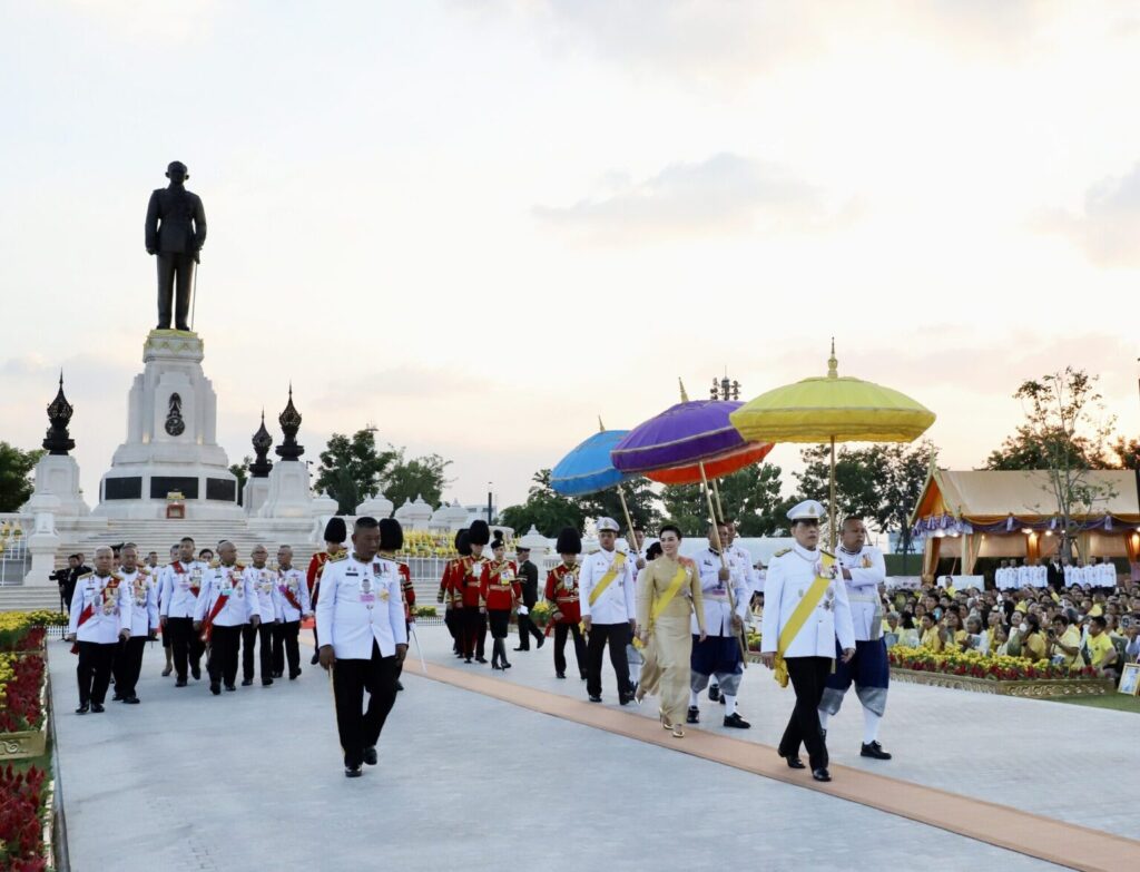 เมื่อเสด็จฯ ถึงพระบรมราชานุสาวรีย์พระบาทสมเด็จพระบรมชนกาธิเบศร มหาภูมิพลอดุลยเดชมหาราช บรมนาถบพิตร พระบาทสมเด็จพระเจ้าอยู่หัว ทรงวางพุ่มดอกไม้ สมเด็จพระนางเจ้าฯ พระบรมราชินี ทรงวางพุ่มดอกไม้ของสมเด็จพระนางเจ้าสิริกิติ์ พระบรมราชินีนาถ พระบรมราชชนนีพันปีหลวง และทรงวางพุ่มดอกไม้ส่วนพระองค์ เสร็จแล้ว พระบาทสมเด็จพระเจ้าอยู่หัว และสมเด็จพระนางเจ้าฯ พระบรมราชินี ทรงจุดธูปเทียนเครื่องราชสักการะทองทิศ และทรงจุดธูปเทียนเครื่องทองน้อยถวายราชสักการะ ทรงกราบ สมเด็จพระเจ้าลูกเธอ เจ้าฟ้าสิริวัณณวรี นารีรัตนราชกัญญา และสมเด็จพระเจ้าลูกยาเธอ เจ้าฟ้าทีปังกรรัศมีโชติ มหาวชิโรตตมางกูร ทรงวางพุ่มดอกไม้ ทรงจุดธูปเทียนเครื่องทองน้อยถวายราชสักการะ ทรงกราบ
