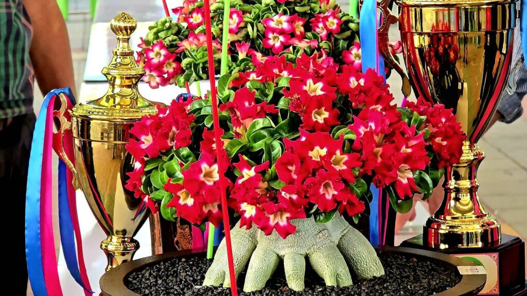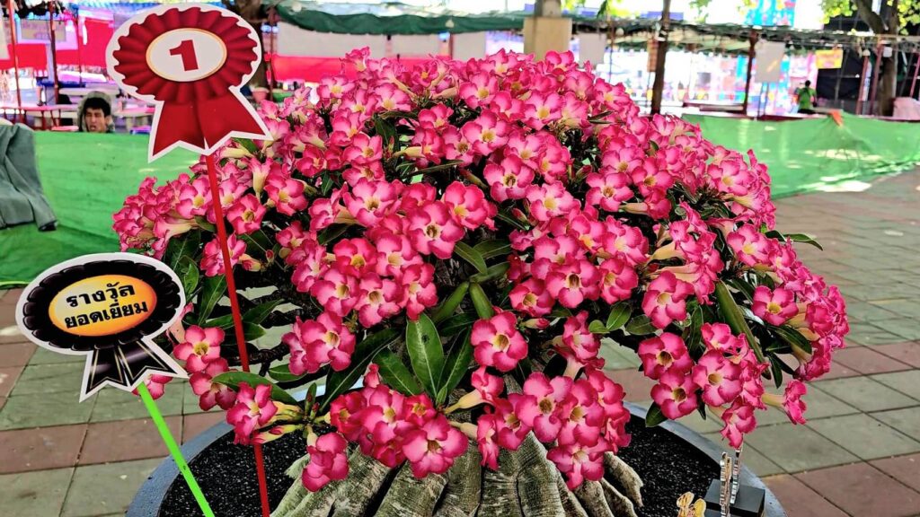 โดย “ชวนชม” เป็นชื่อพันธุ์ไม้ที่มีดอกสีสันสวยงามสะดุดตา มีรูปทรงของต้นและกิ่งก้านที่สวยงามและอ่อนช้อย ปลูกเลี้ยงง่าย ทนต่อสภาพแห้งแล้ง จนได้รับสมญาว่า Desert Rose หรือ “กุหลาบทะเลทราย” ด้วยความที่ชื่อ มีความไพเราะเป็นสิริมงคล “ชวนชม” จึงถือเป็นไม้มงคลชนิดหนึ่งตามความเชื่อของคนไทย แม้แต่ชาวจีนก็เรียกไม้ชนิดนี้ว่า “ปู้กุ้ยฮวย” หรือ ดอกไม้แห่งความร่ำรวย ก็ยังมีความหมายไปในทางสิริมงคลเช่นกัน ปัจจุบัน “ชวนชม” ถือเป็นหนึ่งในพันธุ์ไม้ที่มีการประกวดระดับประเทศ และมีราคาแพงหลักล้านบาท สำหรับราคาจำหน่ายชวนชม กระถาง 6 นิ้ว ราคาเริ่มต้นอยู่ที่ 200-250 บาท ต้นชวนชม ที่ผ่านการทำรากอายุ 1 ปีครึ่ง ราคาอยู่ที่ต้นละ 3,000-4,000 บาท โดยไม้ไซซ์นี้จะมีทรงที่ชัดเจน ลูกค้าซื้อไปแล้วสามารถนำไปพัฒนาต่อได้ และชวนชมที่มีอายุ 5-6 ปีขึ้นไป ราคาจำหน่ายอยู่ที่หลักหมื่นบาท…