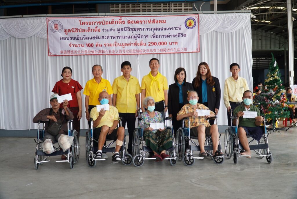 ระหว่างวันที่ 29 พฤศจิกายน – 7 ธันวาคม 2567 มูลนิธิป่อเต็กตึ๊ง นำโดย นางศิริพร กระจ่างหล้า ผู้จัดการฝ่ายสังคมสงเคราะห์ พร้อมด้วย นางสาวศุภรัตน์ สมบัติเจริญไทย หัวหน้าแผนกส่งเสริมการศึกษาและอาชีพ นำทีมลงพื้นที่มอบรถเข็นวีลแชร์พร้อมค่าพาหนะ คนละ 500 บาท แก่ผู้พิการด้อยโอกาสในพื้นที่ 4 จังหวัด ได้แก่ จังหวัดสระแก้ว อุตรดิตถ์ ชุมพร และนครศรีธรรมราช รวมจำนวน 400 คัน ใน โครงการ ป่อเต็กตึ๊ง สงเคราะห์สังคม รวมมูลค่าเป็นเงินทั้งสิ้น 1,160,000 บาท เพื่อบรรเทาความยากลำบากในการดำรงชีวิต และเพื่อให้ผู้พิการสามารถช่วยเหลือตนเองได้