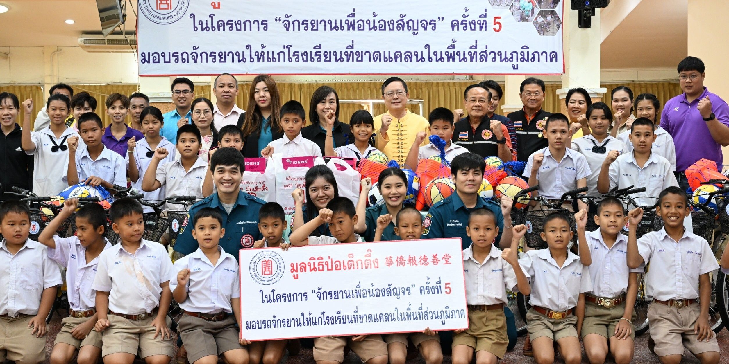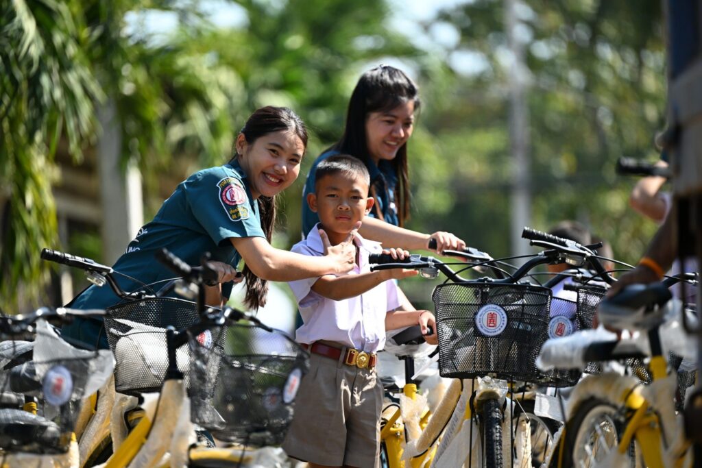 และในโอกาสเดียวกันนี้ ที่จังหวัดอุตรดิตถ์ มูลนิธิฯ ยังได้มอบจักรยานใน “โครงการ จักรยานเพื่อน้องสัญจร” ให้กับโรงเรียนในพื้นที่จังหวัดอุตรดิตถ์ รวม 5 แห่ง รวมจักรยานจำนวน 100 คัน อุปกรณ์กีฬา จำนวน 5 ชุด หน้ากากอนามัย 2,500 ชิ้น พร้อมค่าพาหนะโรงเรียนละ 2,000 บาท คิดเป็นมูลค่า 165,950 บาท เพื่ออำนวยความสะดวกแก่นักเรียนที่ประสบปัญหาการเดินทางมาโรงเรียน แบ่งเบาภาระผู้ปกครอง เสริมสร้างให้นักเรียนได้ออกกำลังกาย เรียนรู้กฎจราจร การแบ่งปัน และการดูแลสาธารณสมบัติร่วมกัน รวมมูลค่าการดำเนินงานทั้งสองโครงการในครั้งนี้ทั้งสิ้น 1,325,950 บาท (หนึ่งล้านสามแสนสองหมื่นห้าพันเก้าร้อยห้าสิบบาทถ้วน) โดยมี ผู้แทนจากหน่วยงานรัฐเป็นประธานในพิธี พร้อมด้วย มูลนิธิฯ / สมาคมจีนประจำจังหวัดต่างๆ เป็นผู้ประสานงานและร่วมในพิธี รวมทั้ง ประชาชน เยาวชน และผู้แทนจากสถาบันการศึกษา เป็นผู้รับมอบ