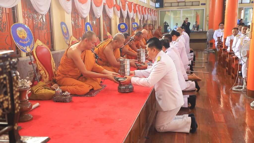 จากนั้น รองผู้ว่าราชการจังหวัดลพบุรี ประธาน ในพิธี นำข้าราชการตุลาการ ทหาร ตำรวจ ข้าราชการพลเรือน พร้อมด้วยพสกนิกรทุกหมู่เหล่า ร่วมประกอบพิธีทำบุญตักบาตรข้าวสารอาหารแห้งพระสงฆ์และสามเณร จำนวน 47 รูป และร่วมพิธีปล่อยพันธุ์สัตว์น้ำเฉลิมพระเกียรติและถวายเป็นพระราชกุศล จำนวน 47,999 ตัว ณ บริเวณท่าน้ำวัดสิงห์ทอง เพื่อส่งเสริมให้พสกนิกรทุกหมู่เหล่าร่วมกันทำความดีถวายเป็นพระราชกุศล แสดงออกถึงความจงรักภักดีต่อสถาบันพระมหากษัตริย์ นำหลักคำสอนทางศาสนามาใช้ในการดำเนินชีวิต สืบสานวัฒนธรรมอันเกี่ยวเนื่องกับสถาบันหลักของชาติและเสริมสร้างความรักความสามัคคีของประชาชน