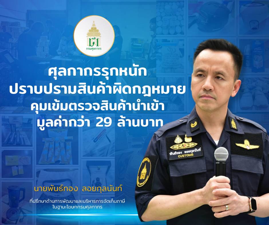 เมื่อวันที่ 6 ธันวาคม 2567 นายพันธ์ทอง ลอยกุลนันท์ ที่ปรึกษาด้านการพัฒนาและบริหารการจัดเก็บภาษี ในฐานะโฆษกกรมศุลกากร เปิดเผยว่า ตามนโยบายของนางสาวแพทองธาร ชินวัตร นายกรัฐมนตรี ที่ให้ความสำคัญกับการป้องกันและปราบปรามการลักลอบนำเข้าสินค้าราคาต่ำ สินค้าไม่มีคุณภาพและสินค้าไม่ได้มาตรฐานเข้ามาจำหน่ายในประเทศ รวมถึงสินค้าอื่นๆ ที่ผิดกฎหมาย เพี่อป้องกันอันตรายที่จะเกิดขึ้นกับประชาชน กระทรวงการคลัง โดย นายพิชัย ชุณหวชิร รองนายกรัฐมนตรีและรัฐมนตรีว่าการกระทรวงการคลัง และนายจุลพันธ์ อมรวิวัฒน์ รัฐมนตรีช่วยว่าการกระทรวงการคลัง จึงสั่งการให้กรมศุลกากร เข้มงวดกวดขันในเรื่องดังกล่าว