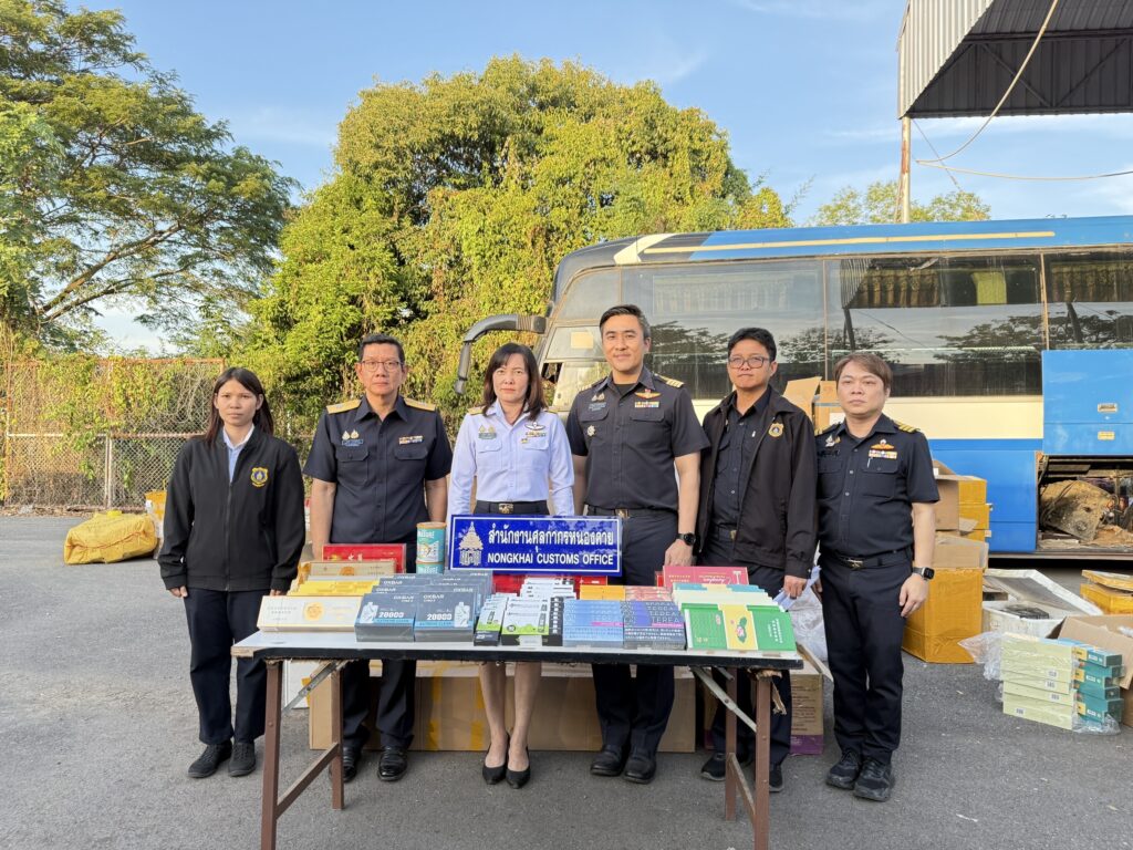 ต่อมา เมื่อวันที่ 29 พฤศจิกายน 2567 กรมศุลกากร โดยสำนักงานศุลกากรหนองคาย พร้อมด้วยเจ้าหน้าที่ประจำจุดตรวจช่องทางรถโดยสารขาเข้าประเทศ ได้ทำการตรวจค้นรถบัสท่องเที่ยวระหว่างประเทศ นครหลวงเวียงจันทน์ ผู้ขับขี่พร้อมผู้โดยสารรวม 8 ราย ผลการตรวจค้นพบสินค้าประเภทเครื่องยนต์ สินค้าอุปโภคบริโภค บุหรี่ บุหรี่ไฟฟ้า และอุปกรณ์ที่ใช้สำหรับบุหรี่ไฟฟ้า รวมมูลค่า 5.8 ล้านบาท การกระทำดังกล่าวเป็นความผิดตามมาตรา 242 ประกอบมาตรา 252 แห่ง พ.ร.บ. ศุลกากร พ.ศ.2560 จึงได้นำตัวผู้ต้องหาพร้อมของกลางส่งพนักงานสอบสวน สภ.เมืองหนองคาย เพื่อดำเนินการตามกฎหมายต่อไป
