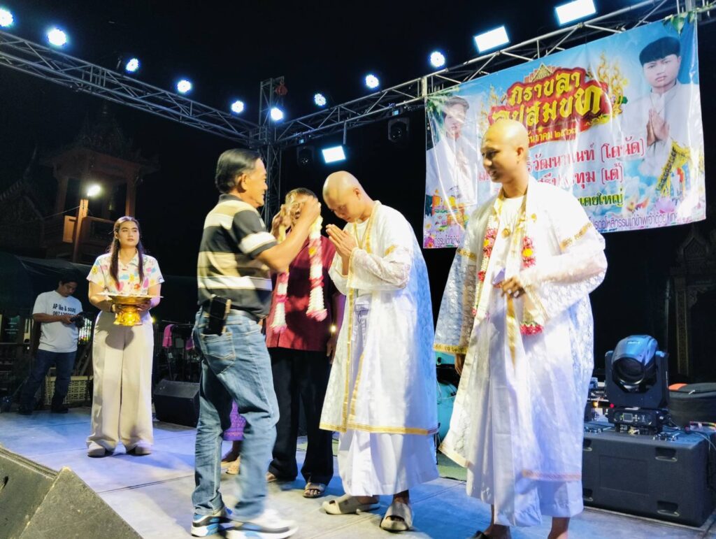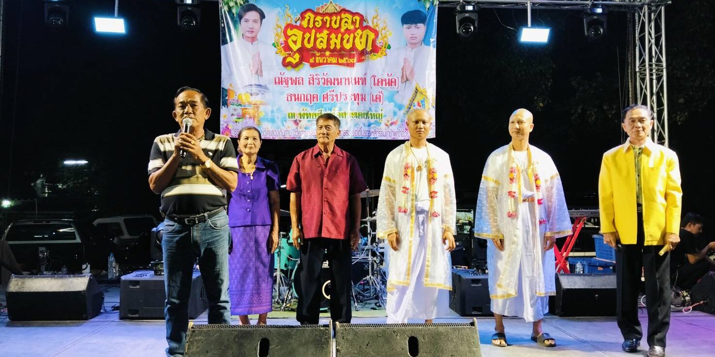 ประธานงานเลี้ยงอุปสมบทของนายณัฐพล (โดนัท) ศิริวัฒนานนท์ และนายธนกฤต (เต้) ศรีปทุม และควงพวงมาลัยให้กับพ่อนาคทั้ง 2 ณ วัดบ้านสระเตยใหญ่ ตำบลหนองทรายขาว อำเภอบ้านหมี่ จังหวัดลพบุรี