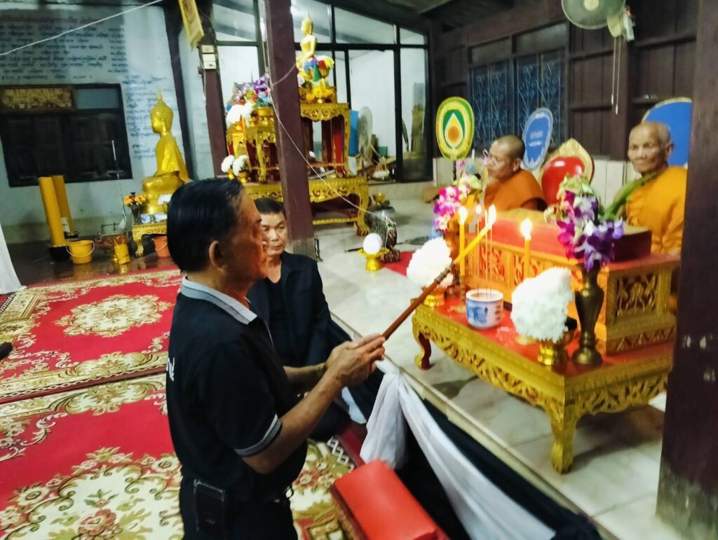 ร่วมเป็นเจ้าภาพสวดพระอภิธรรมศพของ “นายนิยม แก้วทอง (อดีตผู้ใหญ่บ้านหมู่ที่ 7 บ้านคลอง) ตั้งบำเพ็ญกุศลศพที่วัดบ้านคลอง ต.หนองทรายขาว