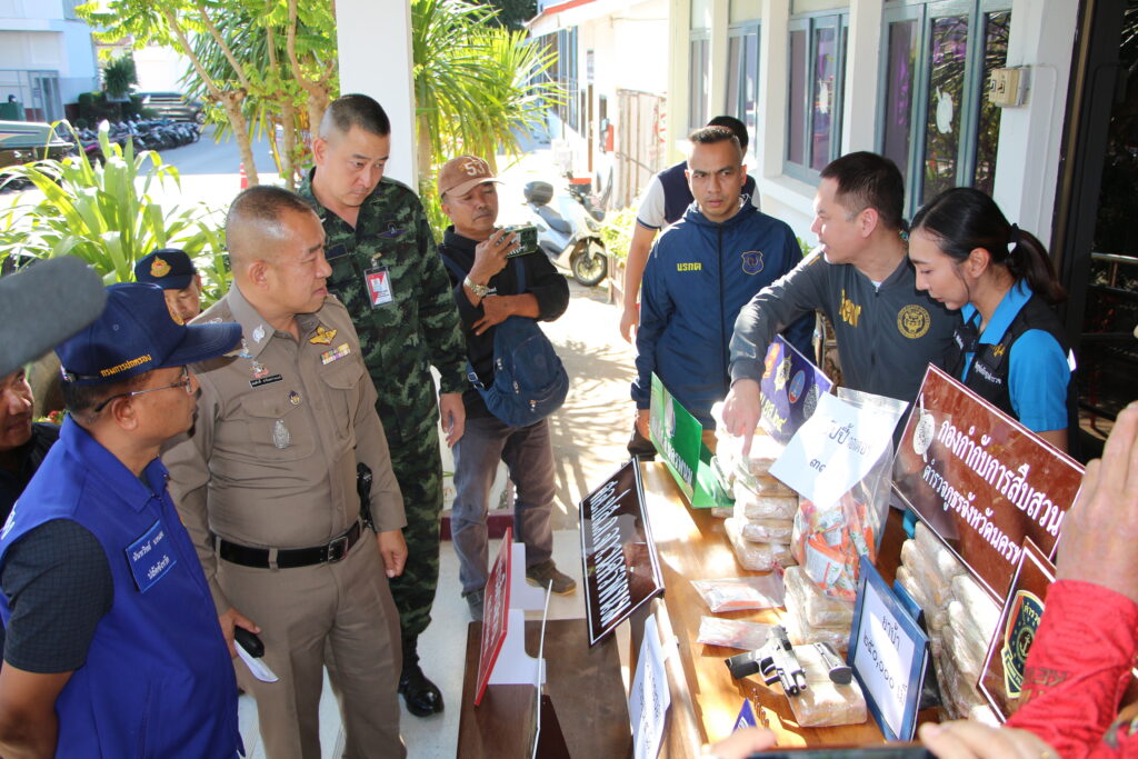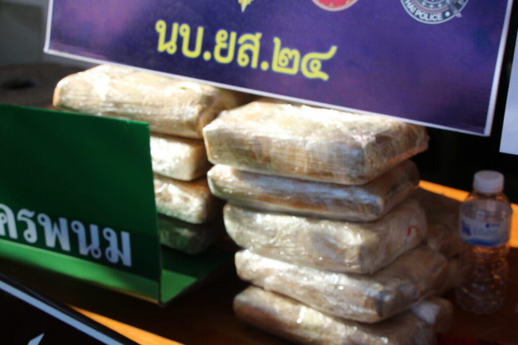 สืบเนื่องจาก เจ้าหน้าที่ตำรวจชุดปฏิบัติการปราบปรามยาเสพติดชุดปฏิบัติการที่ 1 ศูนย์อำนวยการป้องกันและปราบปรามยาเสพติด ตำรวจภูธรจังหวัดนครพนม (ชปส.1 ศอ.ปส.ภ.จว.นครพนม) มีข่าวความเคลื่อนไหวของกลุ่มผู้ค้ายาเสพติดตามแนวชายแดนพื้นที่จังหวัดนครพนม มีความพยายามลักลอบลำเลียงยาเสพติดเข้ามาในพื้นที่จังหวัดนครพนมเพื่อลำเลียงยาเสพติดเข้าสู่พื้นที่ตอนในของประเทศ จึงได้ติดตามความเคลื่อนไหวของกลุ่มผู้ค้ายาเสพติดกลุ่มดังกล่าวอย่างใกล้ชิด ในช่วงวันที่ 1-15 ธ.ค. การดำเนินการตามโครงการแก้ไขปัญหาเสพติดในพื้นที่จังหวัดนครพนม เพื่อให้ประชาชนมีความสุข ตามนโยบายเร่งด่วนของรัฐบาล ในชื่อโครงการ”นครพนมโมเดล” เมื่อวันที่ 7 ธ.ค 67 เวลาประมาณ 14.00 น. ได้รับแจ้งจากแหล่งข่าวที่เชื่อถือได้ว่า จะมีกลุ่มผู้ค้ายาเสพติดลักลอบลำเลียงยาเสพติดเข้ามายังพื้นที่จังหวัดนครพนม ในพื้นที่บ้านนาโดน ต.ขามเฒ่า อ.เมืองนครพนม จ.นครพนม เมื่อทราบดังนั้นแล้ว ชปส.-ศอ.ปส.ก.จว.นครพนม นำโดย พ.ต.ท.จีรเดช อัตตพงษ์ รอง ผกก.ฯ หน.ชปส.ล ศอ.ปส.ถ.จว.นครพนม จึงได้แจ้งให้ พ.ต.อ.ธนารัตน์ มีทองหลาม ผกก.สืบสวม ภ.จว. นครพนม ทราบ พร้อมทั้งวางแผนเพื่อออกตรวจสอบและทำการจับกุมผักระทำความผิด ต่อมา เวลาประมาณ 15.30 น. แหล่งข่าวแจ้งว่า พบชายต้องสงสัย จำนวน 2 คน ยืนอยู่บริเวณริมแม่น้ำโขงบ้านนาโดน.ต.ขามเฒ่า อ.เมืองนครพนม จ.นครพนม มีพฤติการณ์น่าสงสัย เจ้าหน้าที่ตำรวจชุดจับกุมซึ่งประกอบด้วย เจ้าหน้าที่ตำรวจ ชปส.1 ศอ.ปส.ภ.จว.นครพนม และ ถ้าหน้าที่ตำรวจ ส.ร.น. 1 กก.10 บก.รน จึงได้เดินทางไปทำการตรวจสอบตามที่ใต้รับแจ้ง เมื่อเดินทางไปถึงหน้าหลังหนึ่ง ที่ ม.11 ต.ขามเฒ่า อ.เมืองนครพนม จ.นครพนม พบชาย/หญิงไม่ทราบชื่อจำนวน 2 คน แบกสิ่งของบางอย่างเดินเข้าไปยังบริเวณบ้านหลังดังกล่าว โดยมีชาย/หญิง 2 คน นั่งอยู่บริเวณศาลาริมถนนหน้าบ้านหลังดังกล่าว เจ้าหน้าที่ตำราจชุดจับกุมจึงแสดงตัวเป็นเจ้าหน้าที่เพื่อขอทำการตรวจสอบ ชายที่แบกสิ่งของได้แสดงอาการตกใจแล้วได้โยนสิ่งของดังกล่าวลงที่พื้นและพยายามต่อสู้เพื่อหลบหนี เจ้าหน้าที่ตำรวจชุดจับกุมจึงเข้าทำการควบคุมตัวบุคคลทั้งสองไว้ได้ จากการสอบถามเบื้องต้นทราบว่าบุคคล ทั้งสองเป็นราษฎร ประเทศเพื่อนบ้าน ได้ทำการลักลอบลำเลียงยาเสพติดของกลางมารอส่งมอบให้ผู้ค้ายาเสพติดฝั่งประเทศไทย และให้การว่าบุคคลที่นั่งอยู่บริเวณศาลาหน้าบ้าน ทราบชื่อภายหลังคือ นายจิตและนางรัตน์ ซึ่งเป็นเจ้าของบ้านหลังดังกล่าว มีหน้าที่เป็นคนดูต้นทางให้กับตนเพื่ออำนวยความสะดวกในกา