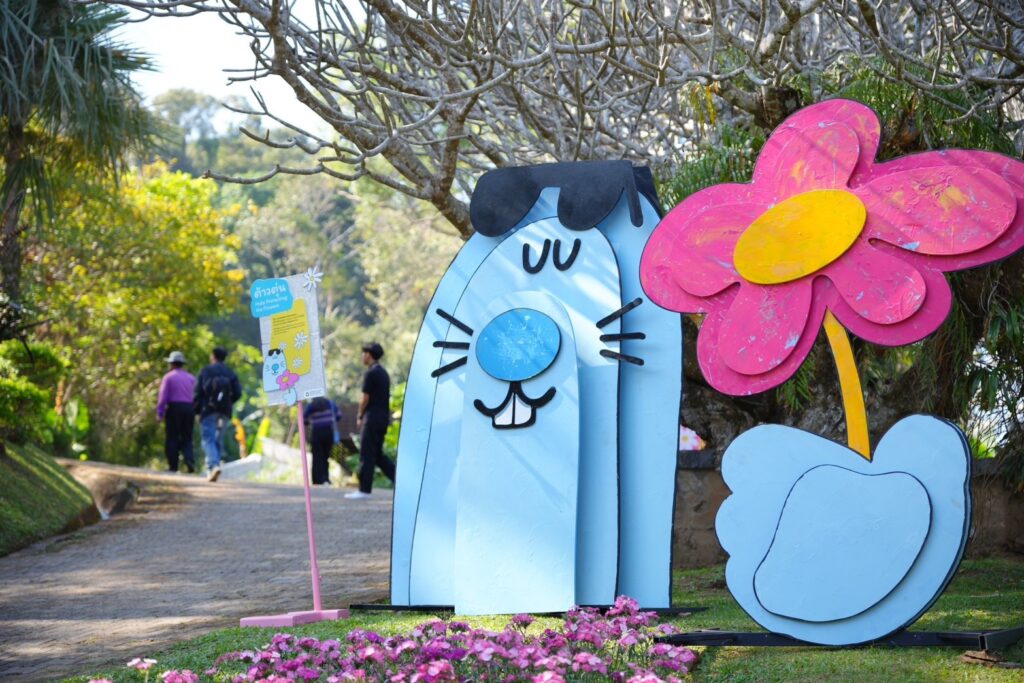 พบกับความพิเศษสุดเมื่อศิลปินป๊อปอาร์ตรุ่นใหม่อย่าง “NEWYEAR ปภากร ศรีกัลยกร” มาร่วมสร้างสรรค์งานศิลปะที่ได้แรงบันดาลใจมาจากสัตว์หายากบนดอยตุง อาทิ แมวดาว นางอาย ตัวตุ่น นกโพระดก เป็นต้นซึ่งสะท้อนถึงความหลากหลายทางชีวภาพที่เริ่มกลับมาอุดมสมบูรณ์ผลจาก การดูแลป่าดอยตุงมากว่า 36 ปีออกแบบเป็นตัวการ์ตูนคาแรคเตอร์สุดน่ารักกระจายอยู่ทั่วสวนดอกไม้บนดอย ให้ตามเช็คอินถ่ายรูปเก็บความประทับใจกลับบ้านที่จะทำให้ทุกการเดินทางของคุณเต็มไปด้วยสีสัน ความสุข และแรงบันดาลใจ