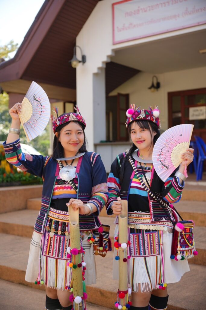 งานหัตถกรรมชนเผ่า สินค้าแฮนด์เมด เช่น เสื้อผ้าทอมือ กระเป๋า และของที่ระลึก ที่ออกแบบอย่างร่วมสมัย