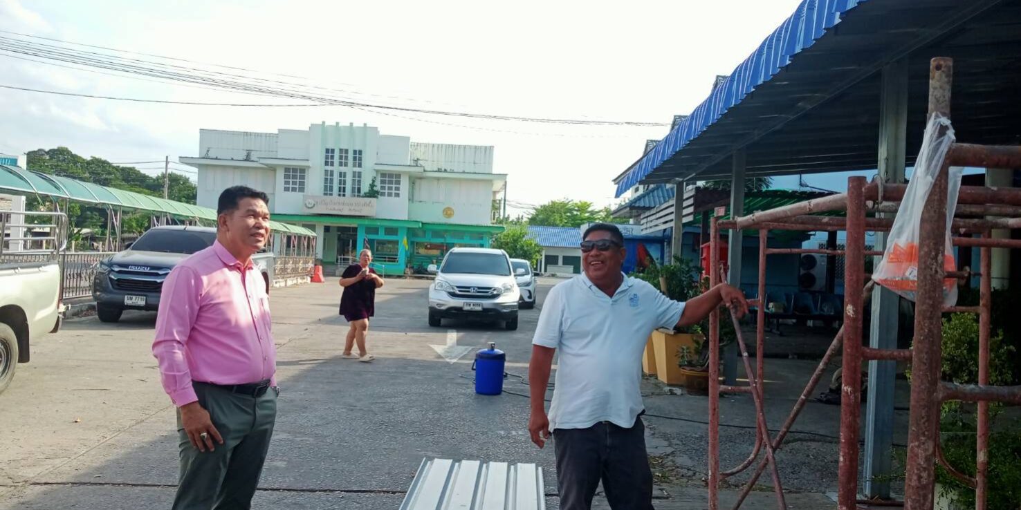 นายอำเภอเมืองลพบุรี สุดแจ๋ว วันหยุดก็ไม่หยุด ลงพื้นที่ตรวจเยี่ยมช่าง มุงหลังคา ในบริเวณสำนักงานทะเบียนอำเภอเมือง เพื่อให้ประชาชนหลบแดดหลบฝน ให้ประชาชนมาใช้บริการอย่างสะดวกสบาย