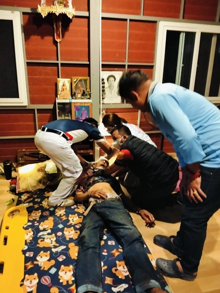 ได้รับแจ้งจากญาติของ “นายสุรชัย แพทย์ราช อายุ 58 ปี บ้านเลขที่ 83 หมู่ที่ 1 บ้านมะขามเฒ่า ต.หนองทรายขาว” ขอรถรับผู้ป่วยสาเหตุล้ม จึงได้มอบหมายให้เลขานุการนายก อบต.หนองทรายขาว ลงพื้นที่พร้อมประสานรถมูลนิธิร่วมกตัญญู จุดบ้านหมี่ รับผู้ได้รับบาดเจ็บอาการเบื้องต้น ผู้ป่วยมีอาการศีรษะแตก, อาเจียนเป็นเลือด จึงได้นำตัวส่ง รพ.บ้านหมี่ เพื่อค่ารักษาตัวต่อไปครับ