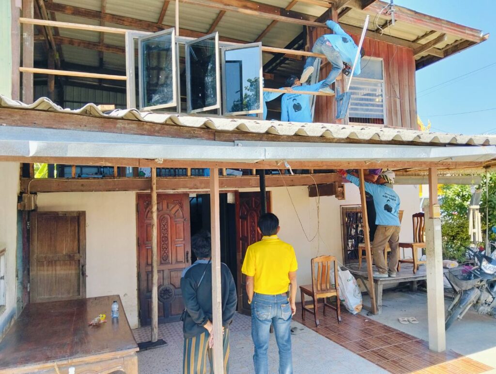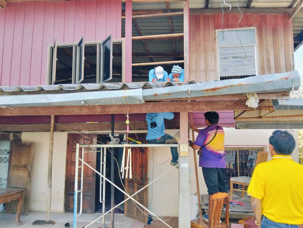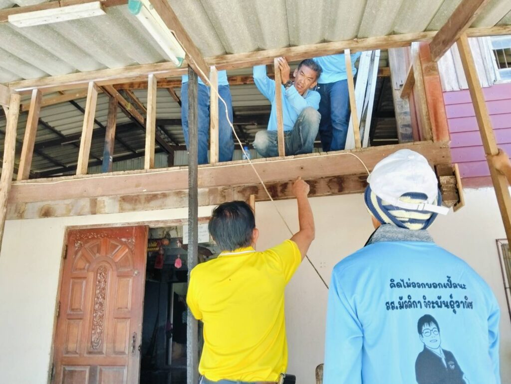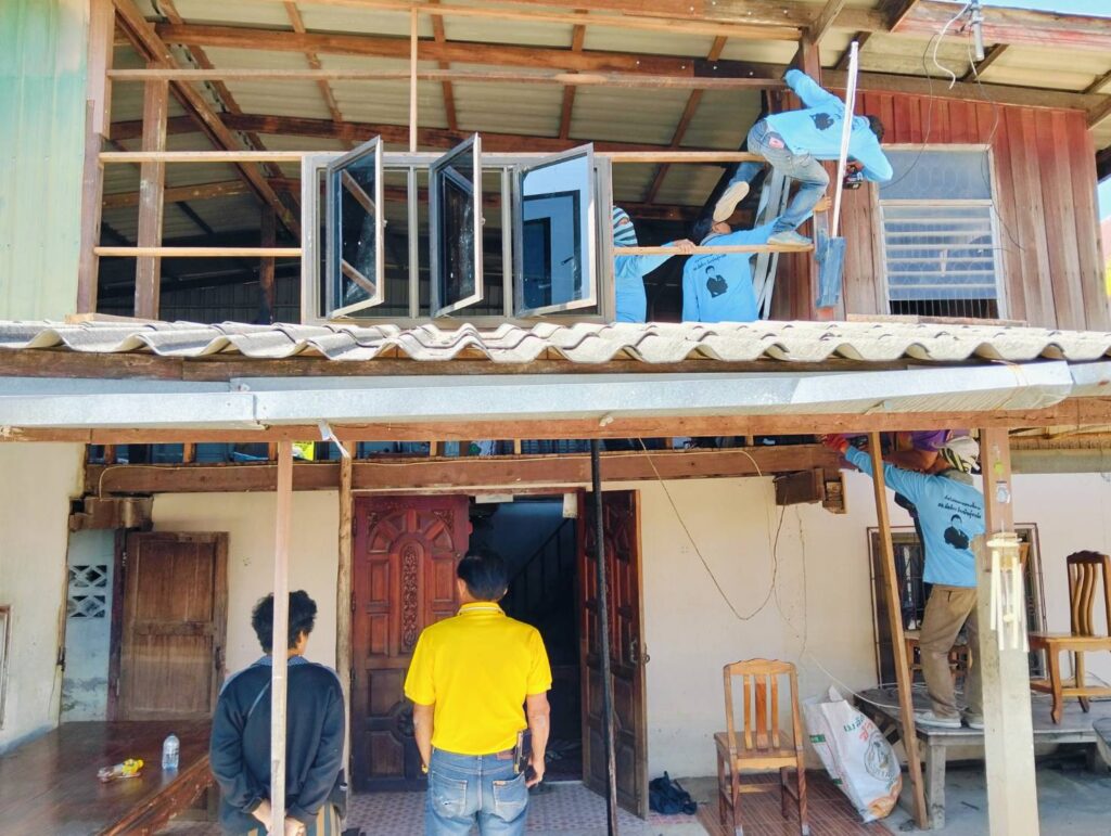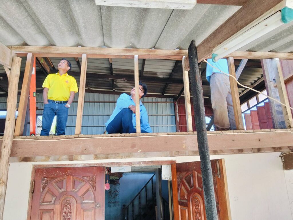 ได้พาทีมงานกองช่าง อบต. หนองทรายขาว ลงพื้นที่บ้านของ “นายนิยม แก้วทอง บ้านเลขที่ 17 หมู่ที่ 7 บ้านคลอง ต.หนองทรายขาว (บ้านผู้ประสบภัยอัคคีภัย) ทำการซ่อมแซมบ้านพักอาศัยบริเวณที่เสียหายจากเพลิงไหม้