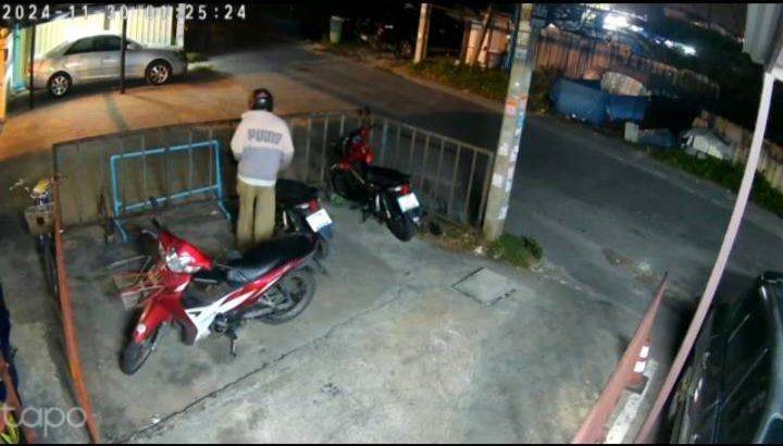 ต่อมาช่วงเวลาประมาณ 06.00 น. พบว่ารถจักรยานยนต์ของตนได้หายไป จึงมาแจ้งความร้องทุกข์ ต่อมาตำรวจฝ่ายสืบสวน สน.ท่าข้าม ลงพื้นที่ตรวจสอบกล้องวงจรปิดบริเวณหอพักเคเคพอรด์ 3/8 ซอยเจริญดี พบคนร้าย จำนวน 2 คน ได้ลักเอารถจักรยานยนต์ ยี่ห้อ ฮอนด้าเวฟ 110 ไอ สีดำ-แดง คันดังกล่าวหลบหนีไป