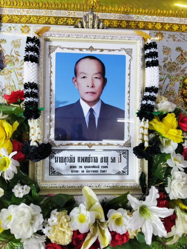 ประธานรดน้ำศพ และวางพวงหรีดเคารพศพของ “นายสุรชัย แพทย์ราช อายุ 58 ปี” ตั้งบำเพ็ญกุศลศพที่วัดบ้านมะขามเฒ่า ต.หนองทรายขาว อ.บ้านหมี่ จ.ลพบุรี ครับเย็นวันนี้