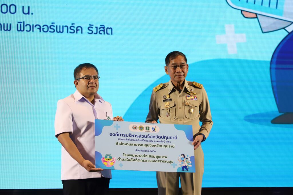 ทาง พลตำรวจโท คำรณวิทย์ ธูปกระจ่าง นายกองค์การบริหารส่วนจังหวัดปทุมธานี ซึ่งมีอำนาจหน้าที่ในการควบคุมและระงับโรคติดต่อ มีความใกล้ชิดกับประชาชน รวมถึงมีความพร้อมด้านงบประมาณ ได้ให้ความสำคัญและให้ความร่วมมือในการป้องกันการแพร่ระบาดของโรคไข้หวัดใหญ่ เพื่อระงับการแพร่ระบาดดังกล่าวสำหรับประชาชนในจังหวัดปทุมธานี รวมถึงให้การดำเนินการป้องกันควบคุมโรคเป็นไปในเชิงรุก สามารถให้บริการประชาชนได้อย่างทั่วถึง ครอบคลุมทุกพื้นที่จังหวัดปทุมธานี จึงได้จัดทำโครงการจัดซื้อวัคซีนป้องกันโรคไข้หวัดใหญ่ 4 สายพันธุ์ จำนวน 200,000 โดส เพื่อป้องกันและควบคุมโรคไข้หวัดใหญ่ ลดอุบัติการณ์การเจ็บป่วยและเสียชีวิตจากไข้หวัดใหญ่ ในประชาชนกลุ่มที่มีความเสี่ยงต่อโรคสูง พร้อมทั้งส่งเสริมและสร้างความตระหนักในการรับบริการวัคซีนป้องกันโรคไข้หวัดใหญ่ 4 สายพันธุ์ แก่ประชาชนในจังหวัดอย่างได้ผล