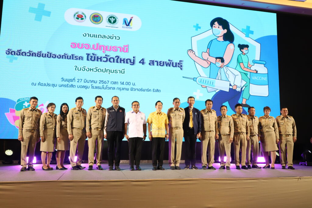 และต่อมา วันที่ 27 มี.ค.67 ที่ โรงแรมโนโวเทล กรุงเทพ ฟิวเจอร์พาร์ค รังสิต อำเภอธัญบุรี จังหวัดปทุมธานี นายภาสกร บุญญลักษม์ ผู้ว่าราชการจังหวัดปทุมธานี(ซึ่งดำรงตำแหน่งผู้ว่าราชการจังหวัดปทุมธานีในขณะนั้น) พร้อมด้วย พลตำรวจโทคำรณวิทย์ ธูปกระจ่าง นายกองค์การบริหารส่วนจังหวัดปทุมธานี นายแพทย์นคร เปรมศรี ผู้อำนวยการสถาบันวัคซีนแห่งชาติ นายแพทย์อภิชน จีนเสวก รองนายแพทย์สาธารณสุขจังหวัดปทุมธานี ร่วมแถลงข่าว “โครงการให้บริการฉีดวัคซีนป้องกันโรคไข้หวัดใหญ่ 4 สายพันธุ์ ในจังหวัดปทุมธานี” พร้อมปล่อยขบวนรถแห่ประชาสัมพันธ์ โดยมี โรงพยาบาลส่งเสริมสุขภาพตำบล สถานีอนามัยเฉลิมพระเกียรติ 60 พรรษา นวมินทราชินี ในจังหวัดปทุมธานีเข้าร่วมรับมอบวัคซีนไปฉีดให้กับประชาชน