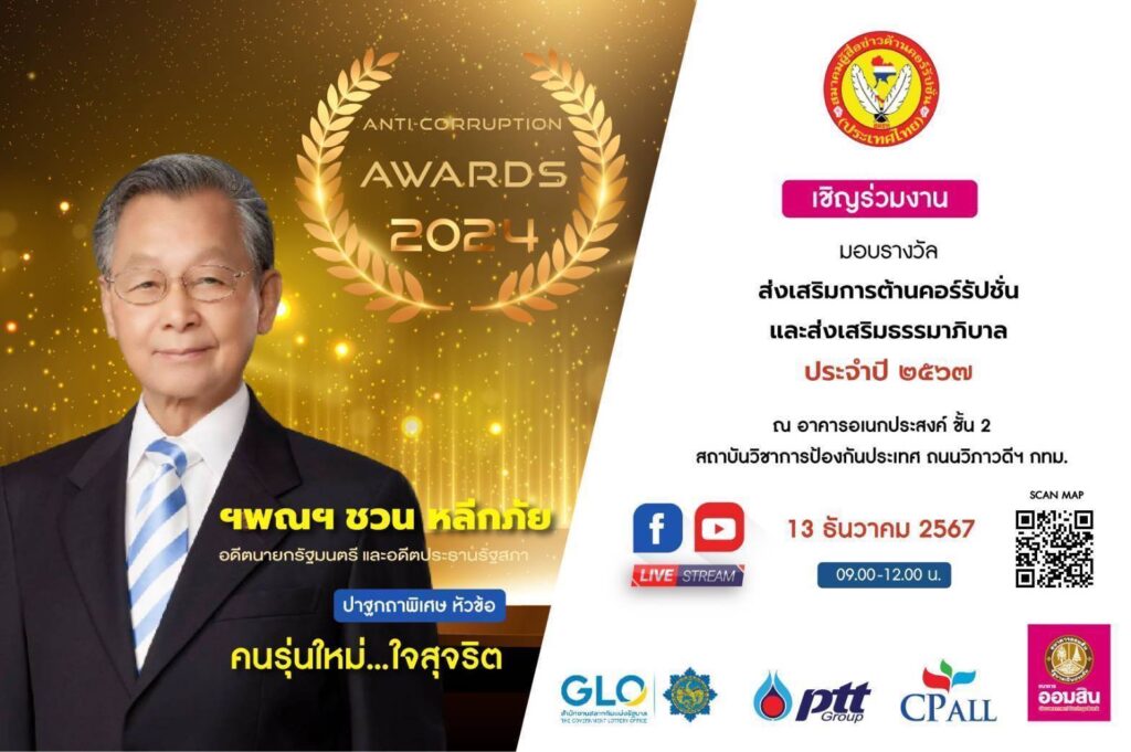 “สมาคมสื่อต้านโกง” รวมพลหยุดทุจริตคอร์รัปชั่น-สร้างธรรมาภิบาล 13 ธันวาคมนี้ ฟังอดีตนายกฯ “ชวน หลีกภัย” ปาฐกถาพิเศษ ปลุกคนรุ่นใหม่ ใจสุจริต