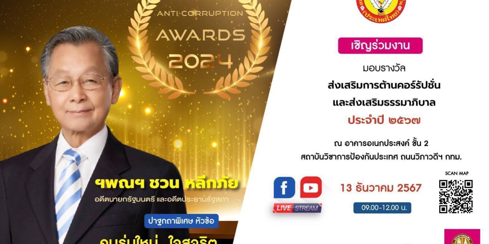 ทั้งนี้ ขอเชิญชวนทุกท่านที่สนใจสามารถเข้าร่วมงานมอบรางวัล “ANTI-CORRUPTION AWARDS 2024” และร่วมรับฟังปาฐกถาพิเศษ ในวันและเวลาดังกล่าว หรือติดตามรับชมการถ่ายทอดสดทางสื่อโซเชียลมีเดีย อาทิ เฟซบุ๊ก, ยูทูป ตั้งแต่เวลา 10.00 น. เป็นต้นไป