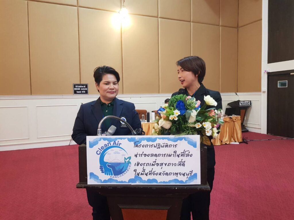 และ อาจารย์ดร.จุฑามาส แก้วสุข อาจารย์ประจำสาขาวิชาวิศวกรรมสิ่งแวดล้อมและการจัดการภัยพิบัติ มหาวิทยาลัยมหิดล วิทยาเขตกาญจนบุรี และเป็นผู้แทนผู้ช่วยศาสตราจารย์ ดร.ธัชวีร์ ลีละวัฒน์ รองอธิการบดีฝ่ายวิทยาเขตกาญจนบุรี ในการกล่าวรายงานวัตถุประสงค์การจัดงาน พร้อมทั้งเป็นหัวหน้าโครงการ “ปฏิบัติการนำร่องลดการเผาในที่โล่งเชิงรุกเพื่อสุขภาวะที่ดีในพื้นที่จังหวัดกาญจนบุรี” ได้เปิดเผยว่า