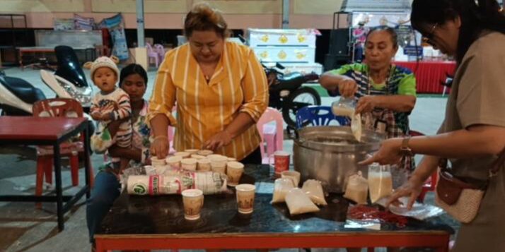 เอาน้ำเต้าหู้มาแจกให้กับ