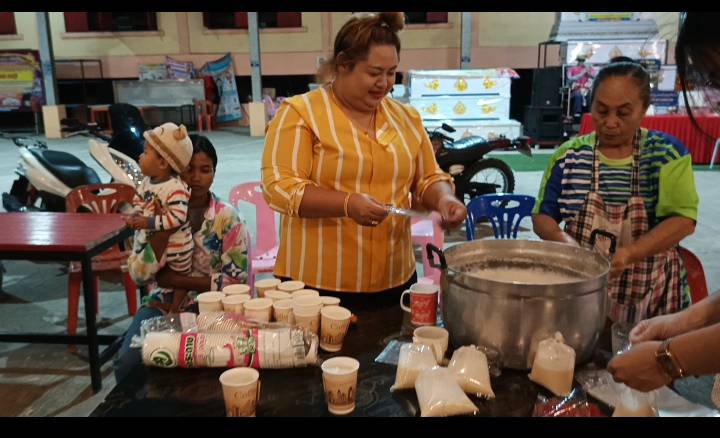 จำนวนน้ำเต้าหู้ 3 หม้อ มาแจกฟรีเพื่อทำบุญให้ปู่เทพท้าวสุวรรณในครั้งนี้ด้วย