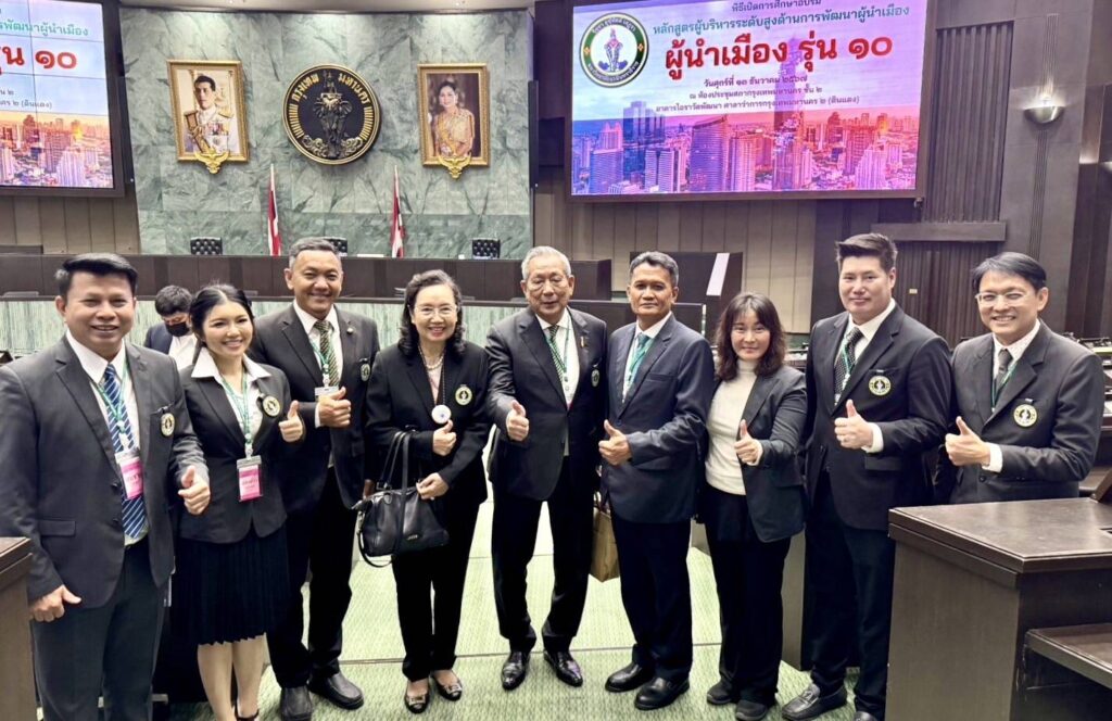 สำหรับผู้เข้าอบรมหลักสูตรผู้นำเมือง รุ่น 10 ประกอบด้วย ข้าราชการกรุงเทพระดับผอ. ข้าราชการการเมืองกรุงเทพมหานคร สมาชิกสภากรุงเทพ ข้าราชการการเมืองระดับประเทศ ผู้บริหารสถาบันอุดมศึกษา ผู้บริหารหน่วยงานรัฐ/รัฐวิสาหกิจ ผู้บริหารองค์กรส่วนท้องถิ่น ผู้แทนมูลนิธิ และสื่อมวลชน จำนวน 130 คน อาทิ นายพินิจ จารุสมบัติ อดีตรองนายกรัฐมนตรี,พล.ท.เจษฎ์ จันทรสนาม รอง ผอ.ประสานการปฏิบัติที่ 1 กองอำนวยการรักษาความมัานคงภายในราชอาณาจักร,พล.ท.ชนินทร์ สิงหนาทนิติรักษ์ ผู้อำนวยการศูนย์การปฏิบัติที่ 3 กองอำนวยการรักษาความมัานคงภายในราชอาณาจักร,นายพรชัย มงคลวนิช อธิการบดี มหาวิทยาลัยสยาม