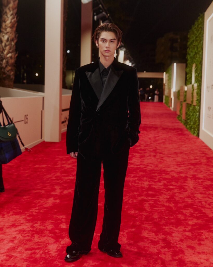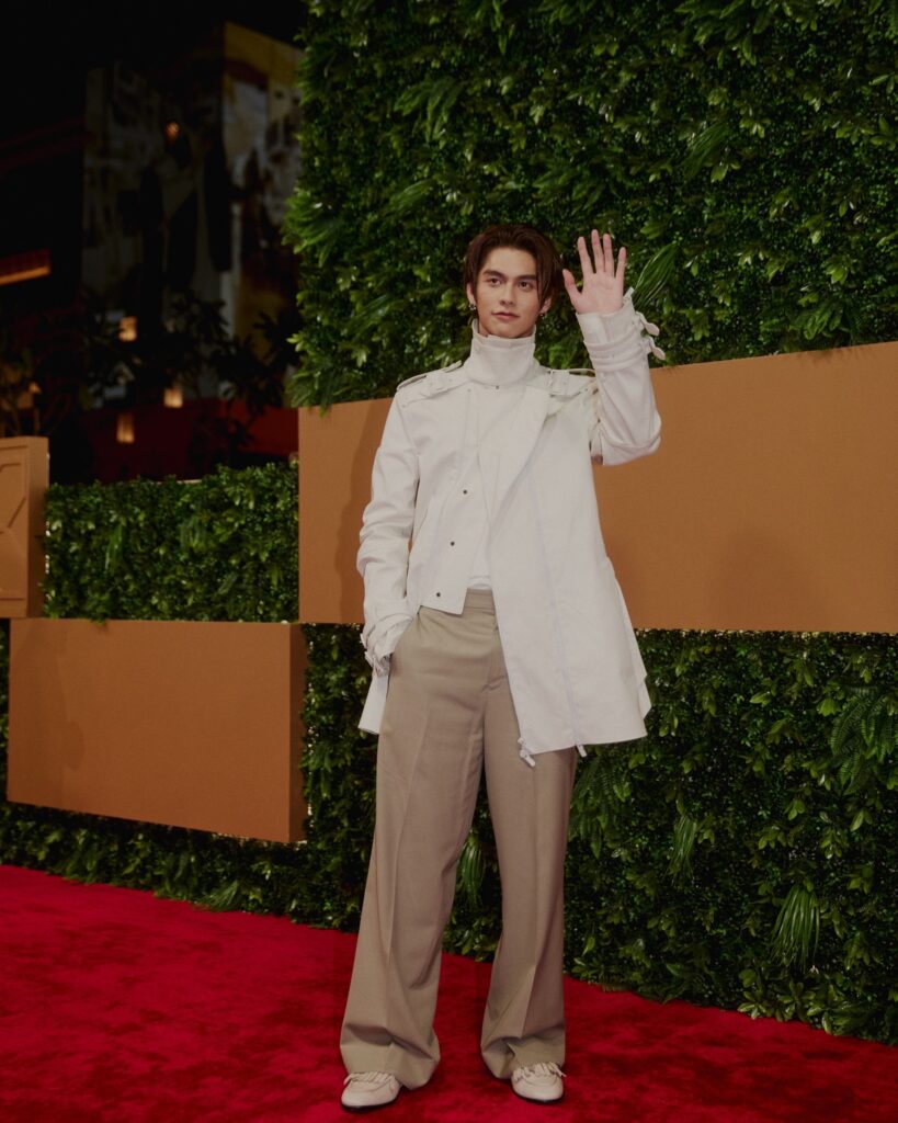 BRIGHT มาในลุค All Black ที่ถ่ายทอดความเรียบหรูได้อย่างสมบูรณ์แบบ โดยไบร์ทสวมลุคจาก Burberry ทั้งสองวัน สำหรับชุดแรกเป็นสูทผ้ากำมะหยี่สีดำจากคอลเลคชั่น Spring 25 และลุคของวันที่สองเป็นโทนสีขาวจากคอลเลคชั่น Summer 25 งานนี้เรียกความหล่อ และเสียงกรี๊ดจากแฟนๆ ได้เป็นอย่างดี