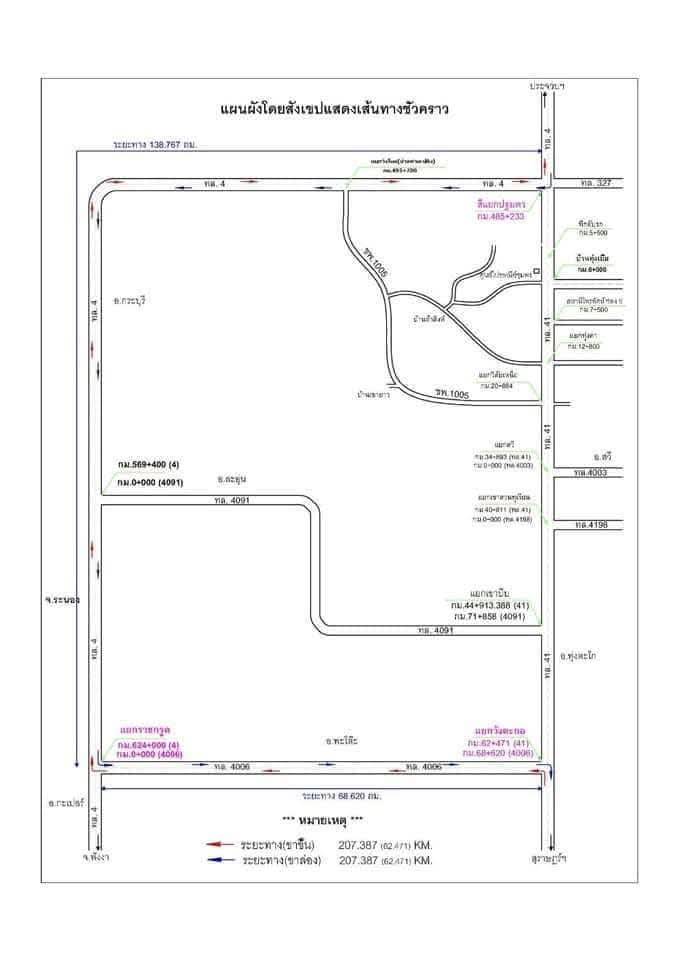 สำหรับผู้เดินทางจากกรุงเทพฯ มุ่งหน้าสู่ภาคใต้ เจ้าหน้าที่แนะนำให้หยุดรถหรือพักรอที่จุดพักรถหรือปั๊มน้ำมันในตัวอำเภอเมืองชุมพร หรือเลี้ยวขวาที่สี่แยกปฐมพรเพื่อเข้าสู่เส้นทางจังหวัดระนอง
