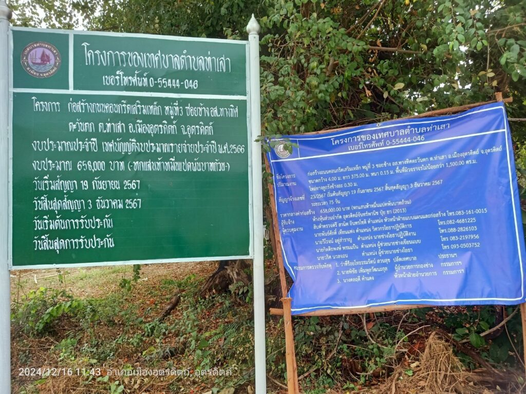 จากกรณีปรากฏข่าวสารบนสื่อออนไลน์ เมื่อวันที่ 11 ธันวาคม 2567 กรณีการดำเนินการจัดจ้างงานก่อสร้างของเทศบาลตำบลท่าเสา อำเภอเมืองอุตรดิตถ์ จังหวัดอุตรดิตถ์ โครงการก่อสร้างถนนคอนกรีตเสริมเหล็ก หมู่ที่ 3 ซอยข้าง อส. ทางทิศตะวันตก ตำบลท่าเสา อำเภอเมืองอุตรดิตถ์ จังหวัดอุตรดิตถ์ ว่ามีการสร้างถนนคร่อมเสาไฟฟ้า จำนวน 2 ต้น และคร่อมสายสลิงยึดเสาไฟฟ้าที่มีอยู่เดิมก่อนการก่อสร้างฯ โดยถนนสายดังกล่าวยังก่อสร้างไม่เรียบร้อย ไหล่ทางยังไม่ได้ถมลูกรัง ตามระยะเวลาของสัญญาจ้างก่อสร้าง