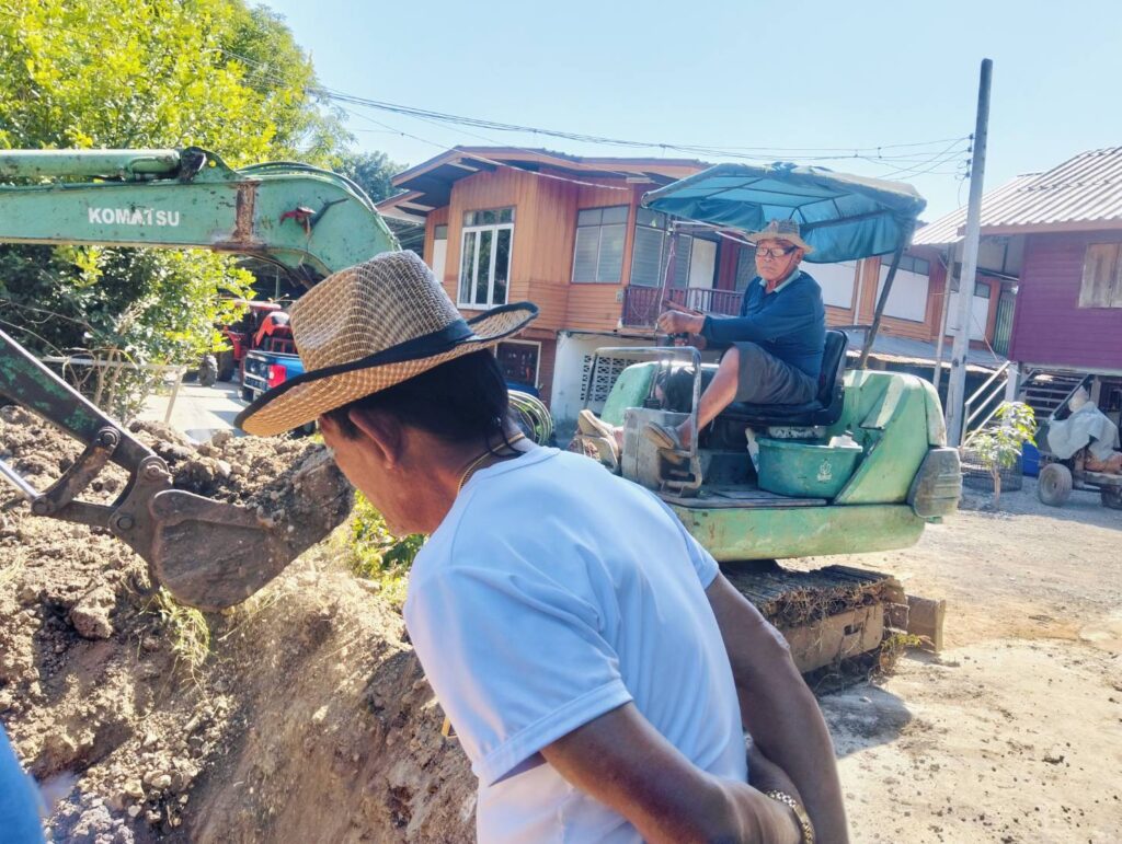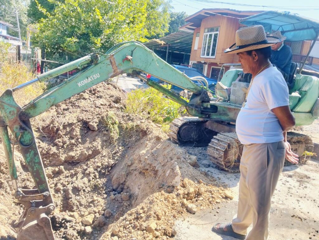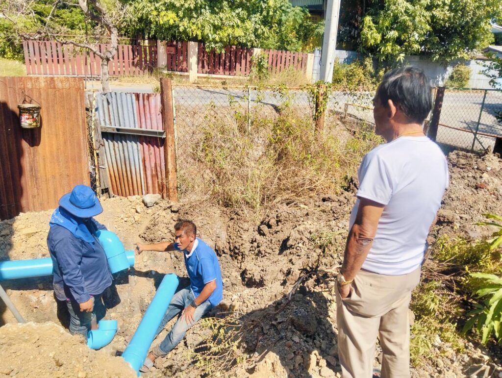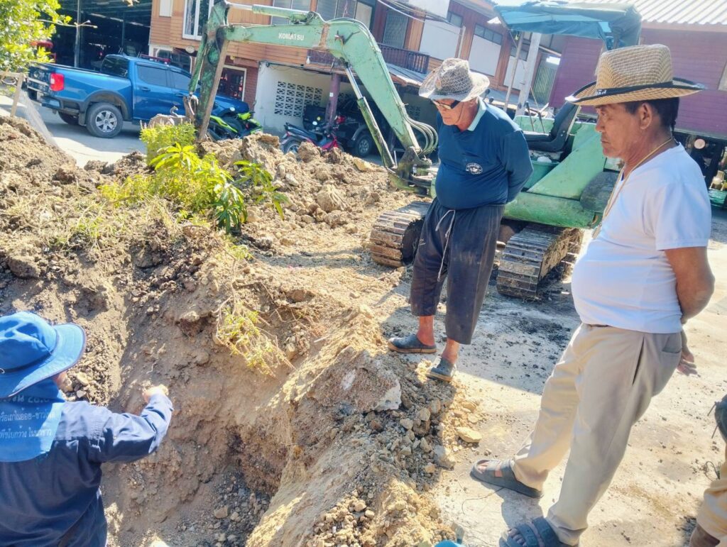 ได้พาทีมงานกองช่าง อบต. หนองทรายขาว ลงพื้นที่หมู่ที่ 4 บ้านสระเตยใหญ่ เพื่อเพื่อทำการซ่อมแซมท่อประปาส่งน้ำของ อบต.หนองทรายขาว ขนาด 6 นิ้ว ที่ชำรุดเสียหาย และได้ความอนุเคราะห์จากนายไพวงษ์ ชินบุตร์ (อดีตนายก อบต. หนองทรายขาว) นำรถแม็คโครมาช่วยดำเนินการขุดเปิดหน้าดินให้ ตอนนี้ได้ทำการซ่อมแซมเสร็จเป็นที่เรียบร้อยแล้ว สามารถใช้น้ำได้ตามปกติ