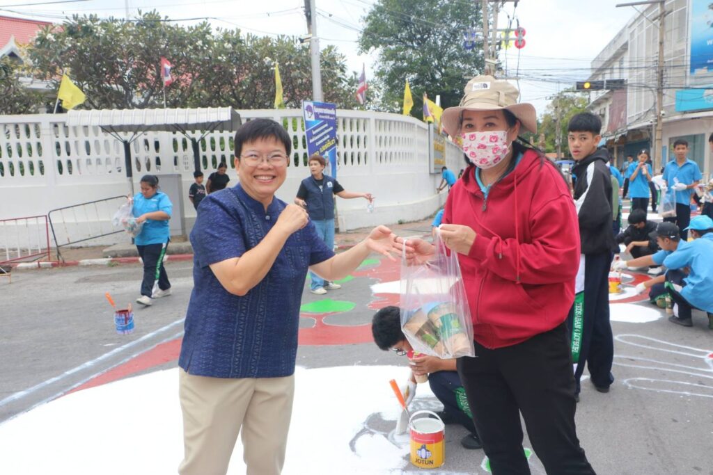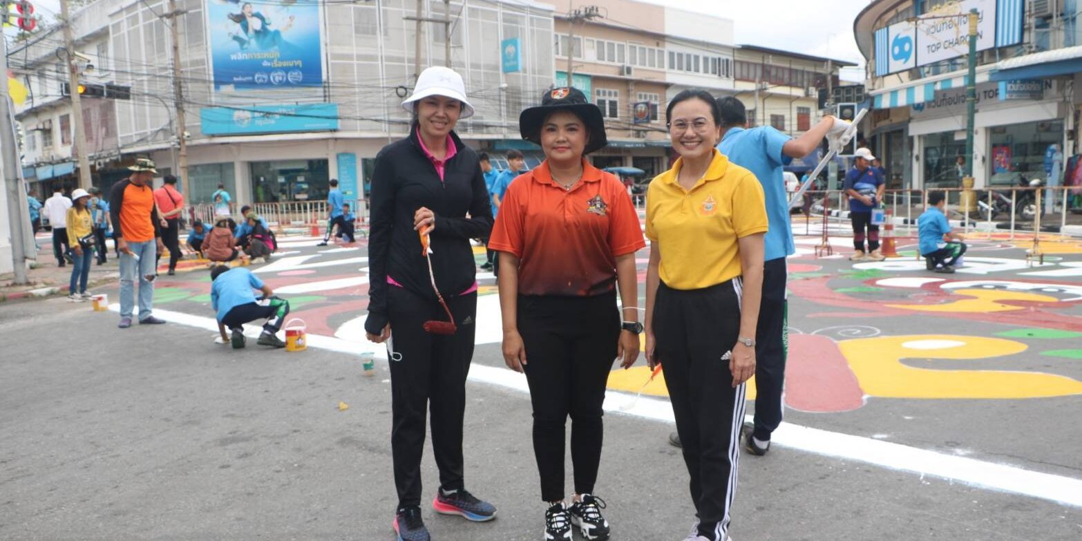 หัวหน้าส่วนราชการเทศบาลเมืองลพบุรี พนักงานเทศบาล คณะครู นักเรียนชมรมศิลปศึกษา โรงเรียนเทศบาล ๔ ระบบสาธิตเทศบาลเมืองลพบุรี เพื่อกำกับดูแลการวาดภาพสีตามแบบร่างลวดลายลงบนฟุตบาท-ทางเท้าแนวสตรีทอาร์ต (Street Art) เพื่อเป็นการสร้างแลนด์มาร์ก (Landmark) แห่งใหม่ใจกลางเมืองลพบุรี เป็นจุดที่ ๓