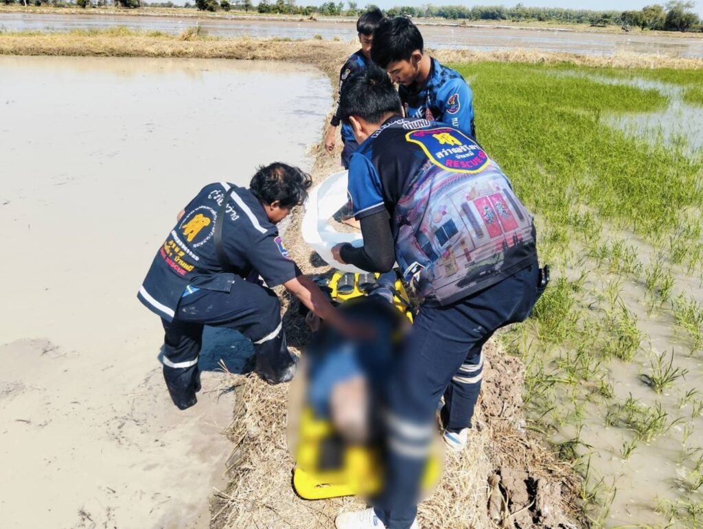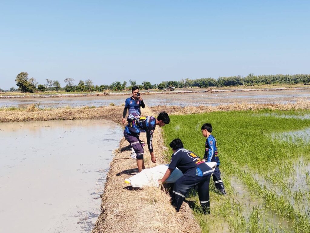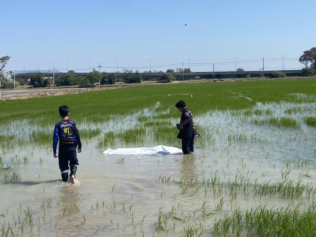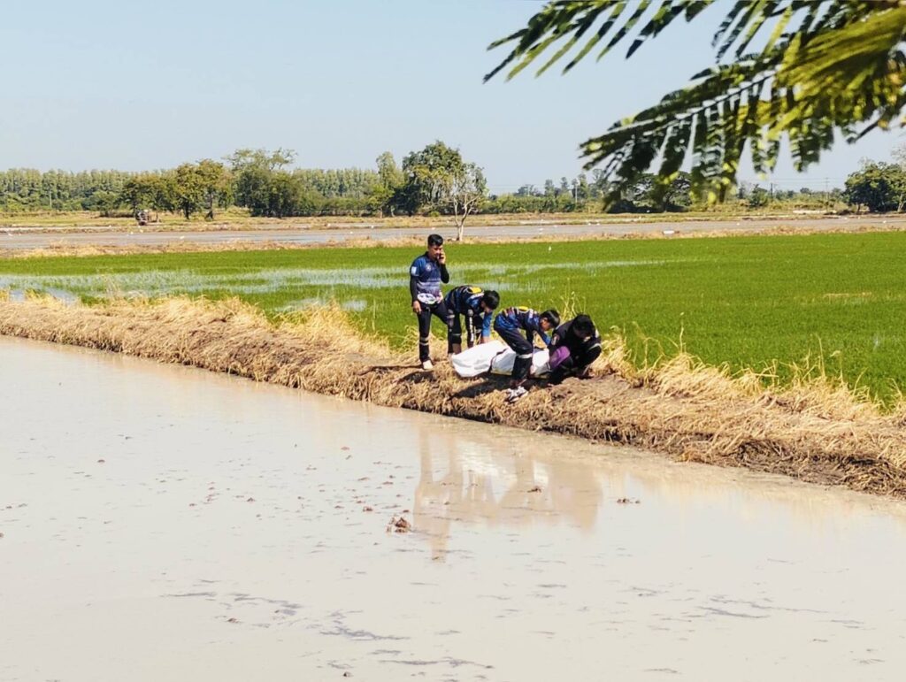 ซึ่งกำลังซ่อมในแปลงนา ที่เกิดเหตุได้พบศพชายวัย 70 ปีนอนตายอยู่กลางทุ่งนา การเสียชีวิตไม่ทราบสาเหตุ