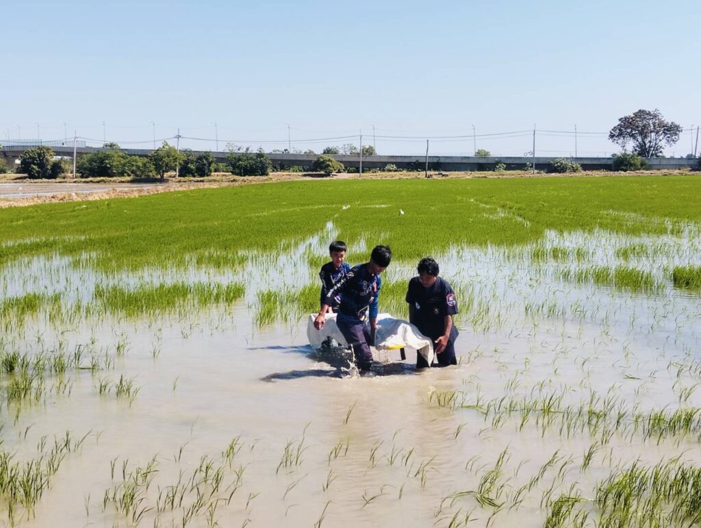 หน่วยกู้ภัยสว่างอริโยธรรมสถานบ้านหมี่ จังหวัดลพบุรี ไปจุดเกิดเหตุ กลางทุ่งนา ต.สนามแจง อ.บ้านหมี่ จ.ลพบุรี
