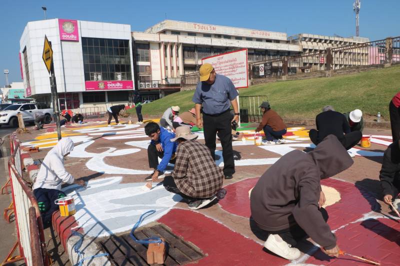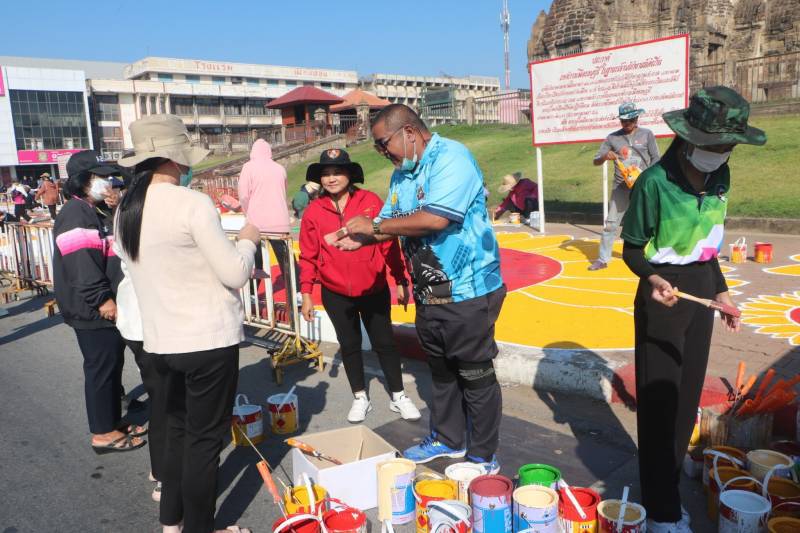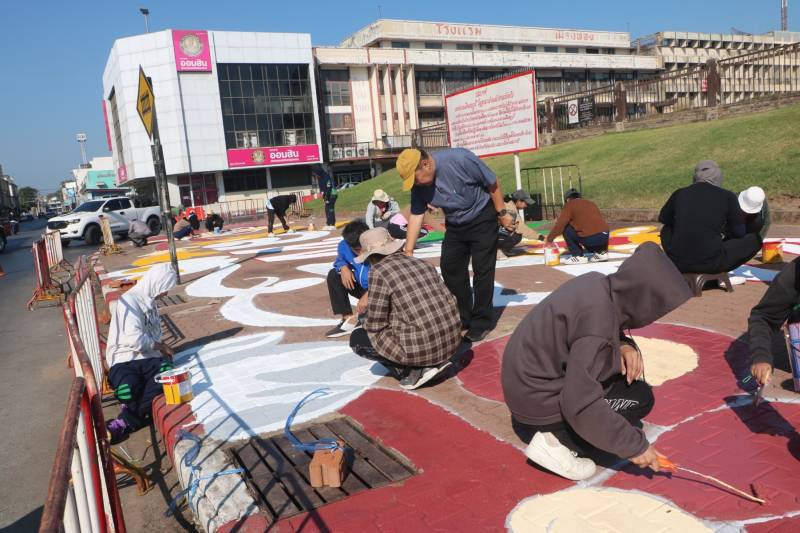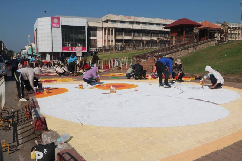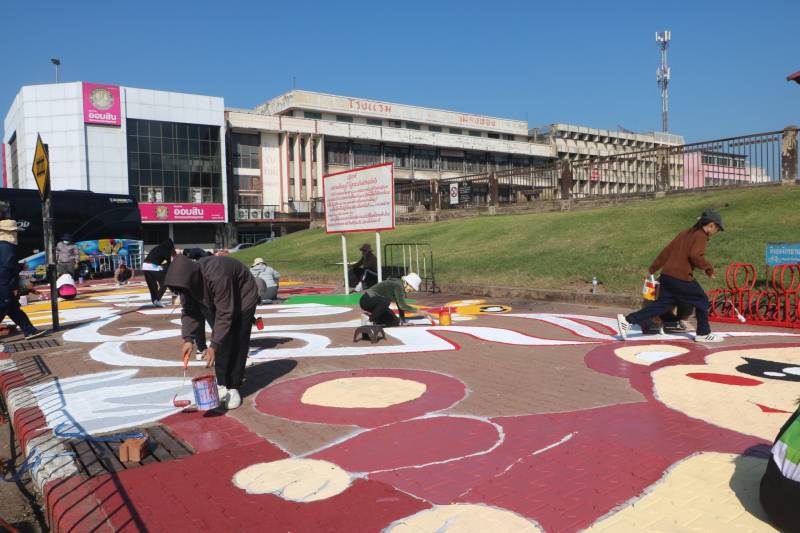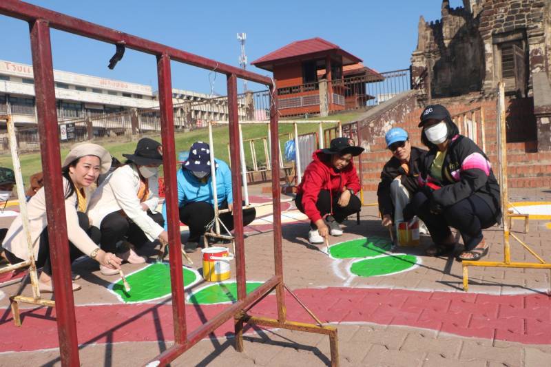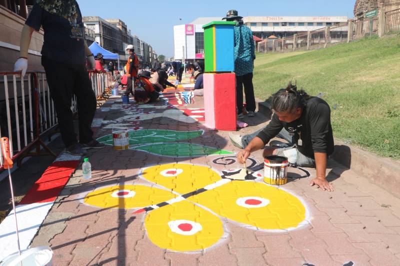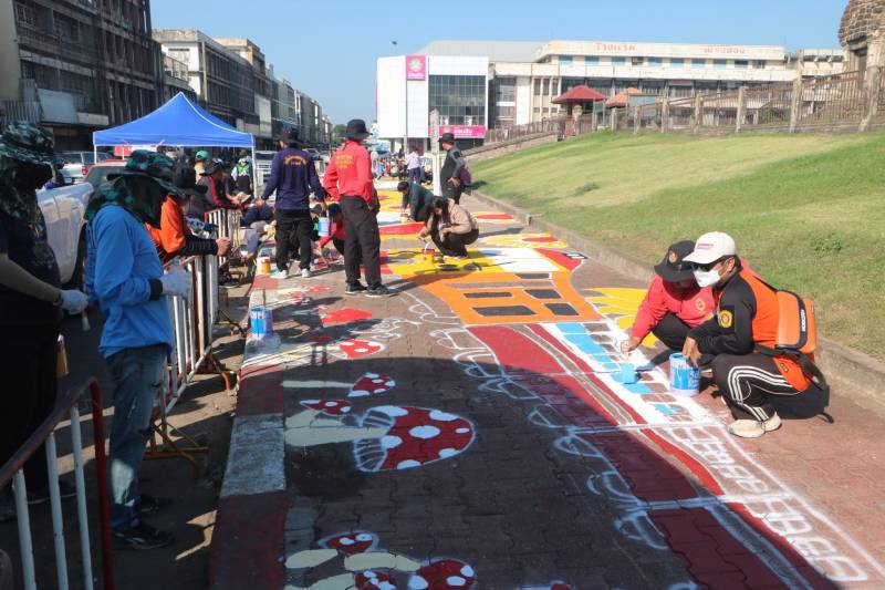 การวาดภาพสีตามแบบร่างลวดลายลงบนฟุตบาท-ทางเท้าแนวสตรีทอาร์ต (Street Art) เพื่อเป็นการสร้างแลนด์มาร์ก (Landmark) แห่งใหม่ใจกลางเมืองลพบุรี