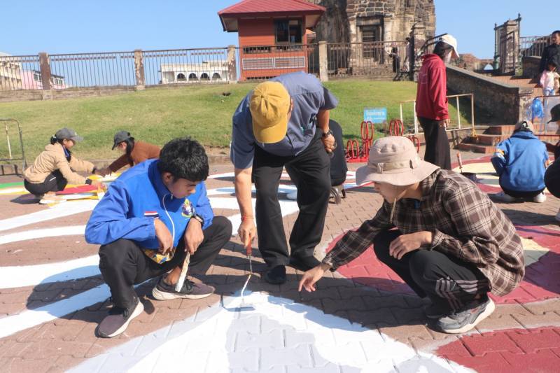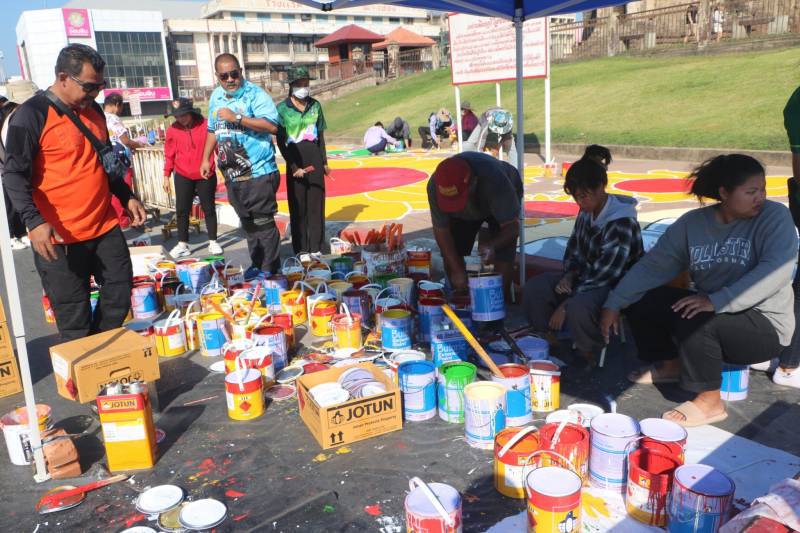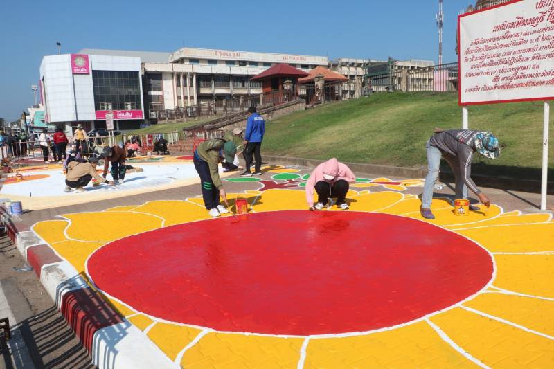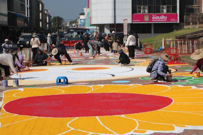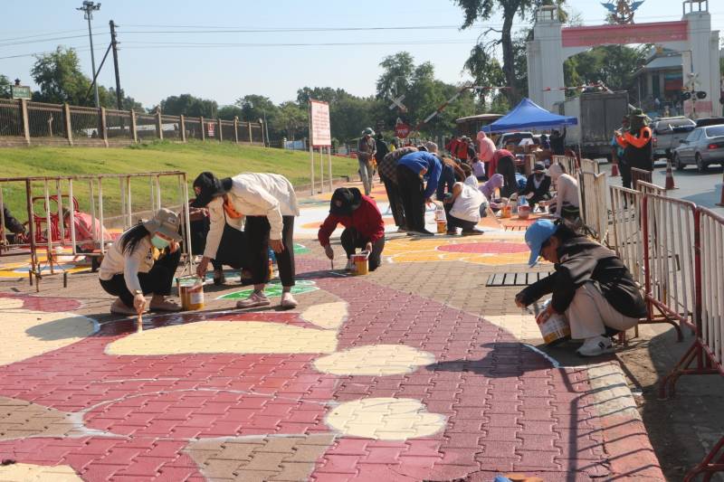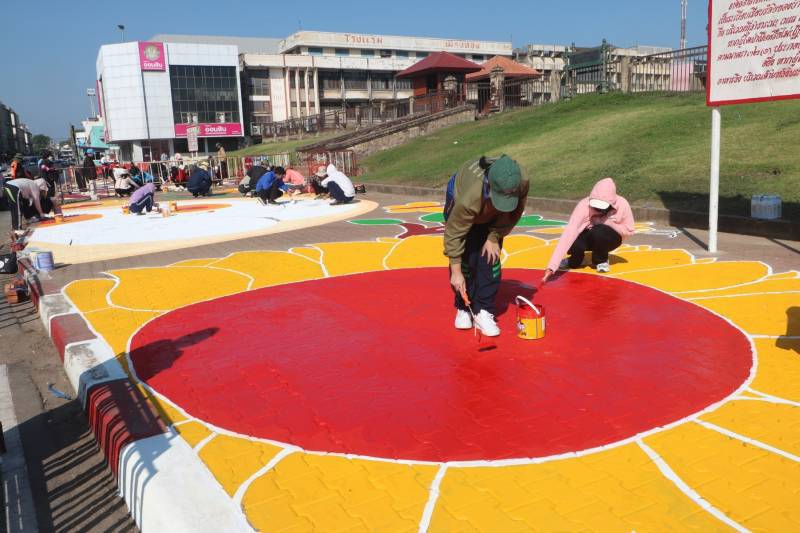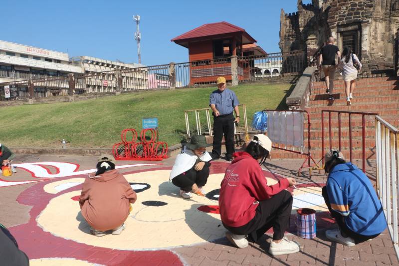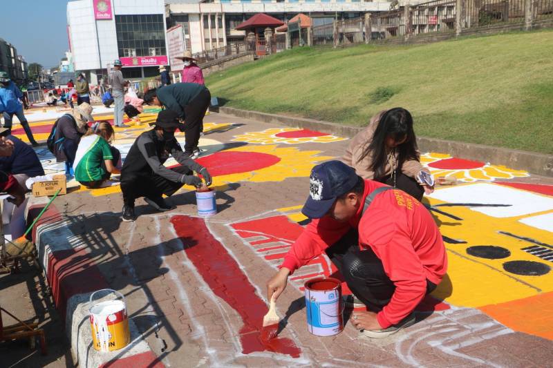 การวาดภาพสีตามแบบร่างลวดลายลงบนฟุตบาท-ทางเท้าแนวสตรีทอาร์ต (Street Art) เพื่อเป็นการสร้างแลนด์มาร์ก (Landmark) แห่งใหม่ใจกลางเมืองลพบุรี