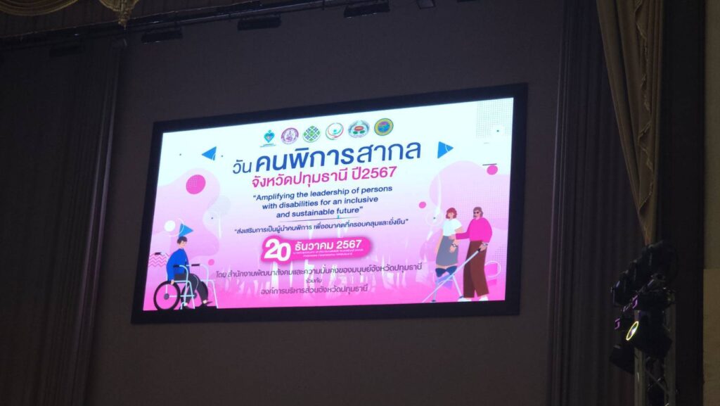 เมื่อเวลา 09.30 น. วันศุกร์ที่ 20 ธันวาคม 2567 นายวราวุธ ศิลปอาชา รัฐมนตรีว่าการกระทรวงการพัฒนาสังคมและความมั่นคงของมนุษย์ เป็นประธานเปิด ” งานวันคนพิการสากลจังหวัดปทุมธานี ประจำปี 2567 ” ที่ หอประชุมราชมงคล มหาวิทยาลัยเทคโนโลยีราชมงคลธัญบุรี ( คลอง6 ) ตำบลคลองหก อำเภอคลองหลวง จังหวัดปทุมธานี โดยมีนายองครักษ์ ทองนิรมล รองผู้ว่าราชการจังหวัดปทุมธานี พลตำรวจโท คำรณวิทย์ ธูปกระจ่าง นายกองค์การบริหารส่วนจังหวัดปทุมธานี รศ.ดร.บุญยัง ปลั่งกลาง ผช.อธิการบดี มหาวิทยาลัยเทคโนโลยีราชมงคลธัญบุรี นายเขื่อน สุปัญบุตร ประธานสภาคนพิการทุกประเภทจังหวัดปทุมธานี นายอนุกูล ปีดแก้ว ปลัดกระทรวงการพัฒนาสังคมและความมั่นคงของมนุษย์ พร้อมด้วยร้อยตำรวจเอก ดร.ตรีลุพธ์ ธูปกระจ่าง นายกเทศมนตรีนครรังสิต ให้เกียรติร่วมงานฯ พร้อมผู้มีเกียรติและประชาชนเป็นจำนวนมาก