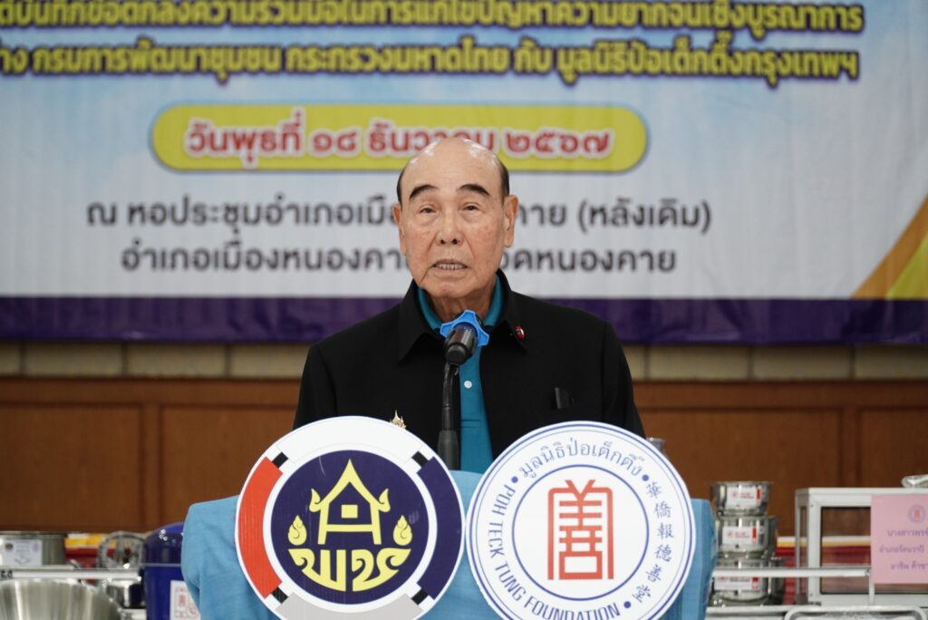 ระหว่างวันที่ 16 – 20 ธันวาคม พ.ศ. 2567 มูลนิธิป่อเต็กตึ๊ง นำโดย นายวิเชียร เตชะไพบูลย์ ประธานกรรมการ ห่วงใยเยาวชน ประชาชนผู้ยากไร้ และผู้พิการ มอบหมายคณะกรรมการมูลนิธิฯ ลงพื้นที่จังหวัดหนองคาย เร่งลดความเหลื่อมล้ำ มอบโอกาส สร้างชีวิต แก่ชาวหนองคายอย่างยั่งยืน รวมมูลค่าที่มูลนิธิป่อเต็กตึ๊งดำเนินการกว่าเจ็ดแสนบาท โดยเมื่อวันพุธที่ 18 ธันวาคม พ.ศ. 2567 นายวิรุฬ เตชะไพบูลย์ ที่ปรึกษาประธานกรรมการมูลนิธิป่อเต็กตึ๊ง เป็นประธานในพิธี พร้อมด้วย นายสุรพงษ์ เตชะหรูวิจิตร กรรมการและรองเลขาธิการ นายณัฐพร จาตุศรีพิทักษ์ ผู้ช่วยกรรมการ และ นางสาวดวงชุตา ติยะพจนพรกุล ผู้ช่วยผู้จัดการฝ่ายสังคมสงเคราะห์ นำทีมลงพื้นที่จังหวัดหนองคาย (จังหวัดที่ 16 ของภาคตะวันออกเฉียงเหนือ) จำนวน 21 ครัวเรือน พร้อมมอบจักรยาน จำนวน 50 คัน แก่โรงเรียนชนบทที่ขาดแคลน จำนวน 5 โรงเรียน เพื่อให้นักเรียนที่ประสบปัญหาในการเดินทางได้ยืมเรียน รวมถึงเป็นการแบ่งเบาภาระค่าพาหนะแก่ผู้ปกครองได้อีกทางหนึ่ง อีกทั้งยังเสริมสร้างให้นักเรียนได้ออกกำลังกาย เรียนรู้กฎจราจร เรียนรู้การแบ่งปัน และดูแลรักษาสาธารณสมบัติร่วมกัน รวมมูลค่าการดำเนินการช่วยเหลือชาวหนองคายในครั้งนี้ทั้งสิ้น จำนวน 560,120 บาท (ห้าแสนหกหมื่นหนึ่งร้อยยี่สิบบาทถ้วน) นอกจากนี้ มูลนิธิฯ ยังได้จัดหน่วยแพทย์สงเคราะห์ชุมชน นำทีมแพทย์อาสาฯ เจ้าหน้าที่หน่วยแพทย์ ทีมบรรเทาสาธารณภัย (กู้ชีพ) และอาสาสมัครลงพื้นที่ให้บริการประชาชนฟรี ประกอบด้วย บริการตรวจรักษาโรคทั่วไป จ่ายยา ทันตกรรม คัดกรองเบาหวาน กิจกรรมนันทนาการ ตรวจวัดสายตาพร้อมแจกแว่น บริการตัดผม ฯลฯ ให้แก่ประชาชนในพื้นที่ โดยมี นายสมภพ สมิตะสิริ ผู้ว่าราชการจังหวัดหนองคาย เป็นประธานในพิธี พร้อมด้วย นายสุรพล แก้วอินธิ ผู้ตรวจราชการกรมการพัฒนาชุมชนเป็นประธานร่วมในพิธี มูลนิธิฯ / สมาคมจีนประจำจังหวัดต่างๆ เป็นผู้ประสานงานและร่วมในพิธี รวมทั้ง ประชาชน เยาวชน และผู้แทนจากสถาบันการศึกษา เป็นผู้รับมอบ และอาสาสมัครมูลนิธิป่อเต็กตึ๊งร่วมมอบและสร้างสีสันภายในงาน ณ บริเวณหอประชุมที่ว่าการอำเภอเมือง จังหวัดหนองคาย