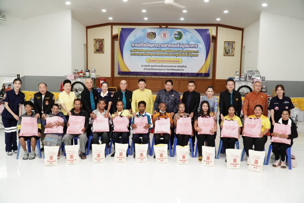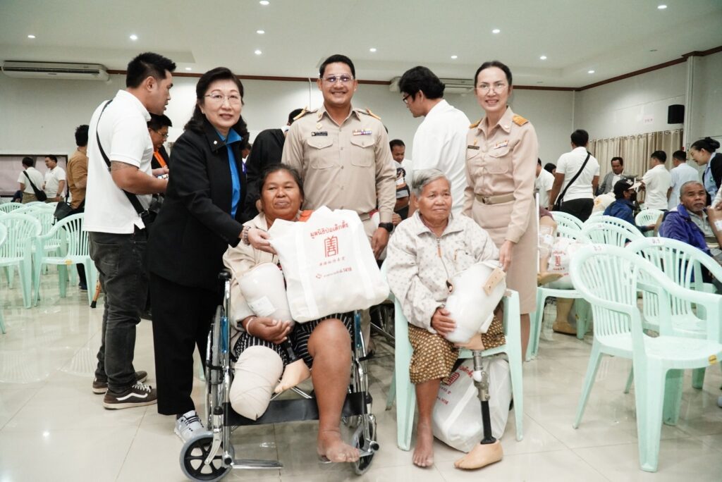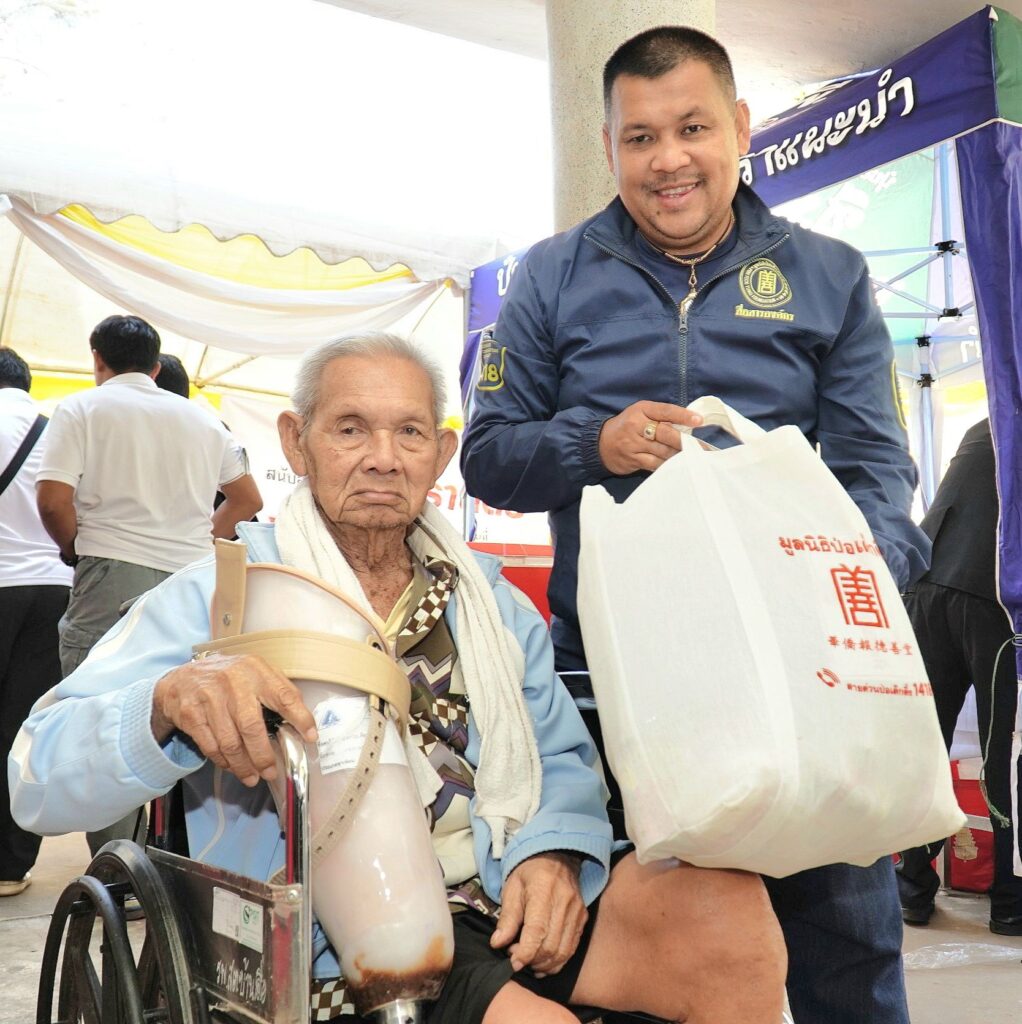 และวันนี้ (วันศุกร์ที่ 20 ธันวาคม พ.ศ.2567) นางสาวดวงชุตา ติยะพจนพรกุล ผู้ช่วยผู้จัดการฝ่ายสังคมสงเคราะห์ มูลนิธิป่อเต็กตึ๊ง นำทีมแผนกส่งเสริมการศึกษาและอาชีพ ลงพื้นที่ มอบค่าพาหนะ พร้อมเครื่องอุปโภคบริโภค ประกอบด้วย ผ้าห่ม ปลากระป๋อง เส้นหมี่ขาว ทิชชูเปียก รองเท้าฟองน้ำ และ ขนม บรรจุถุงผ้าดิบ ให้แก่ผู้รับขาเทียม ช่างและอาสาสมัคร และเจ้าหน้าที่ที่เข้าร่วมโครงการออกหน่วยทำขาเทียมพระราชทานเคลื่อนที่ ครั้งที่ 172 รวมจำนวน 160 ชุด พร้อมมอบเครื่องอุปโภคบริโภคให้แก่เจ้าหน้าที่มูลนิธิขาเทียมอีก 50 ชุด คิดเป็นงบประมาณมูลค่าทั้งสิ้น 162,132.50 บาท (หนึ่งแสนหกหมื่นสองพันหนึ่งร้อยสามสิบสองบาทห้าสิบสตางค์) โดยมี นายสมภพ สมิตะสิริ ผู้ว่าราชการจังหวัดหนองคาย เป็นประธานในพิธี พร้อมด้วย ศาสตราจารย์คลินิก นายแพทย์นิเวศน์ นันทจิต เลขาธิการมูลนิธิขาเทียม ในสมเด็จพระศรีนครินทราบรมราชชนนี กรรมการมูลนิธิขาเทียมฯ และผู้แทนจากหน่วยงานภาครัฐและเอกชนต่างๆ ร่วมในพิธี ณ หอประชุมองค์การบริหารส่วนจังหวัดหนองคาย อำเภอเมืองหนองคาย จังหวัดหนองคาย