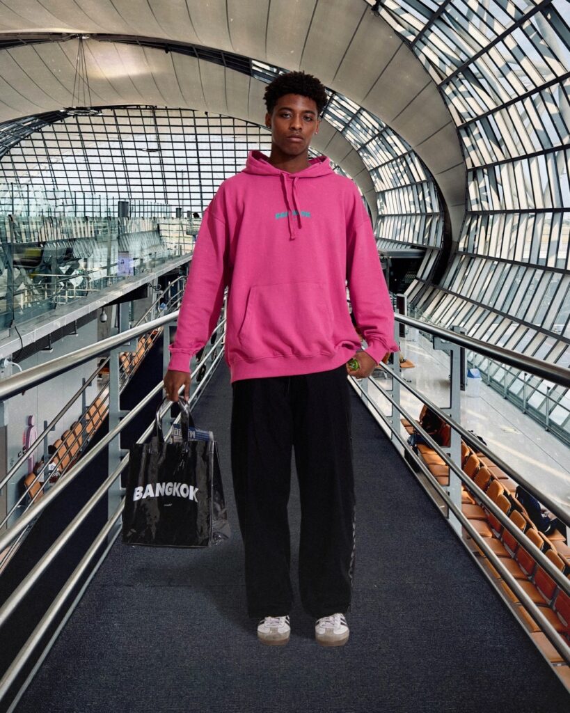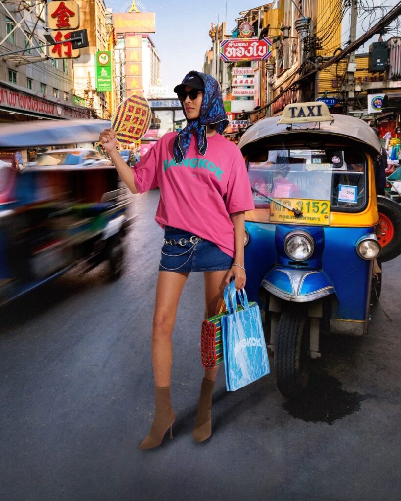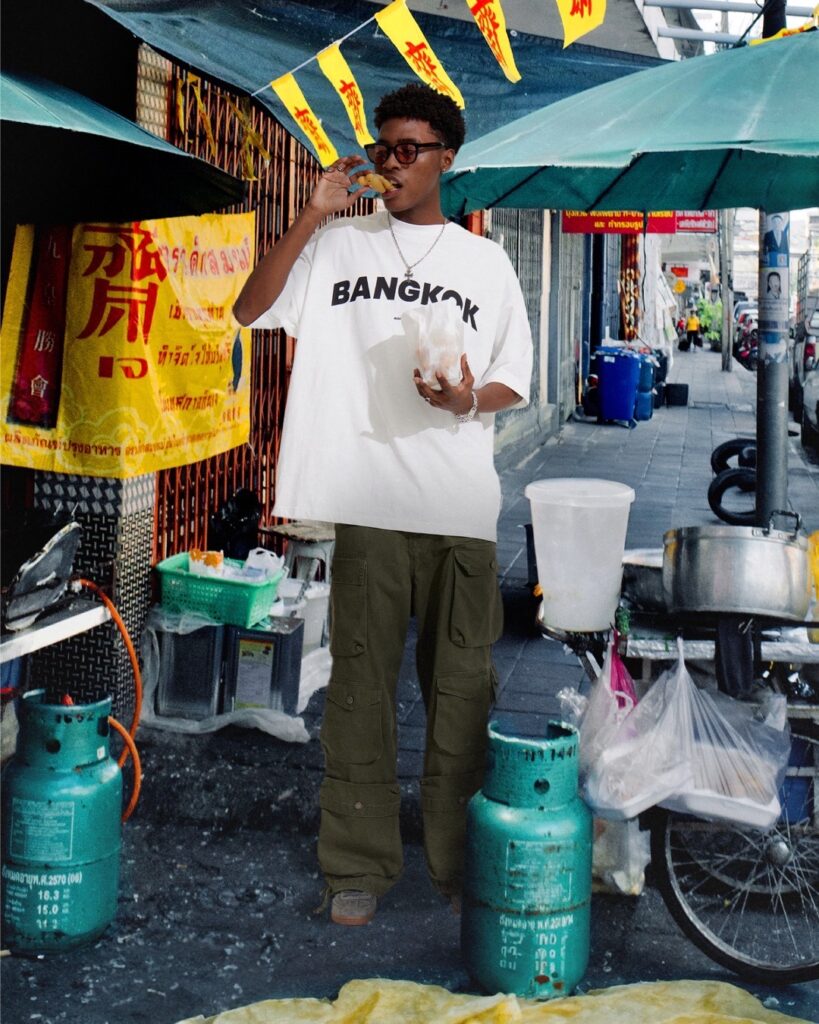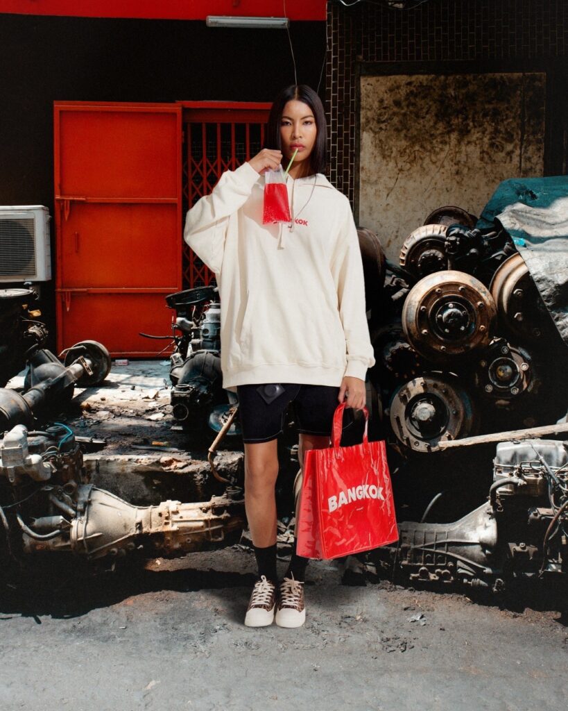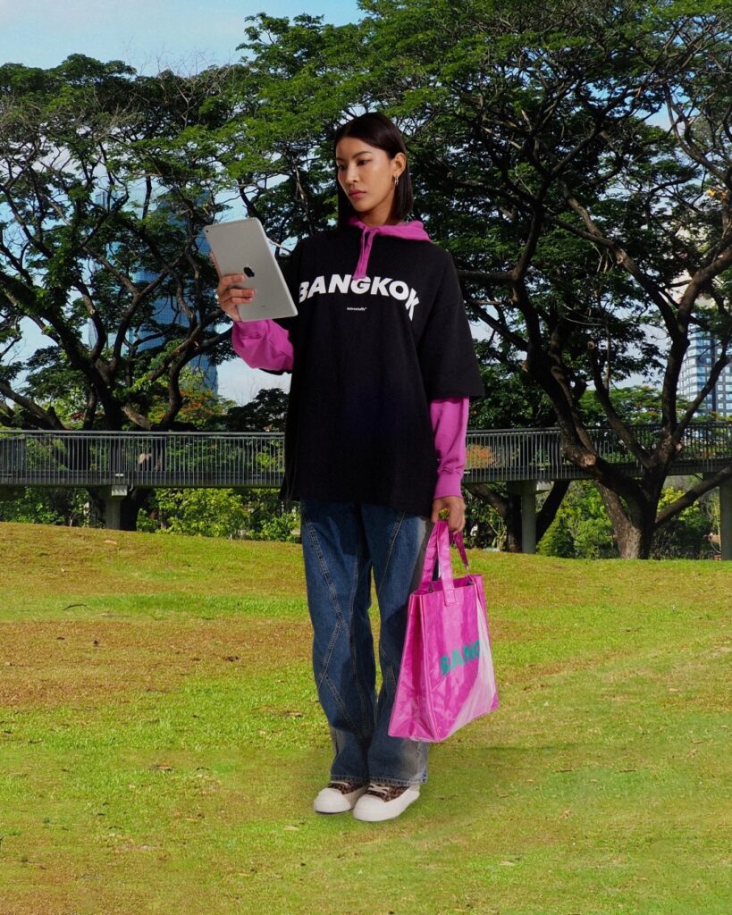 ไอเท็มในคอลเลคชั่นนี้โดดเด่นด้วยดีไซน์กราฟิกคำว่า BANGKOK ที่สะท้อนความเป็นตัวตนของเมือง ทั้งเสื้อยืดโอเวอร์ไซส์, ฮู้ดดี้, สเวตเตอร์, เสื้อแขนกุด ไปจนถึงแว่นกันแดดและกระเป๋าดีไซน์ล้ำ