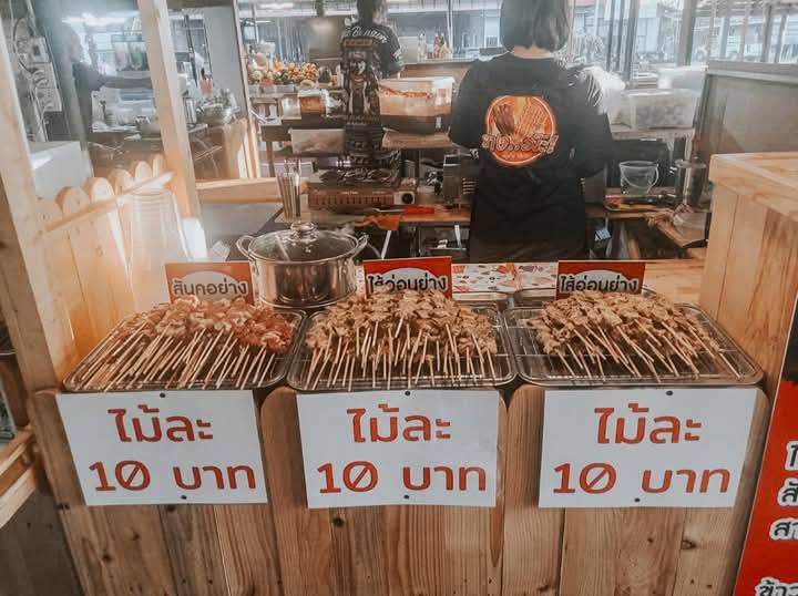 สันคอหมูย่างไม้ละ 10 บาท