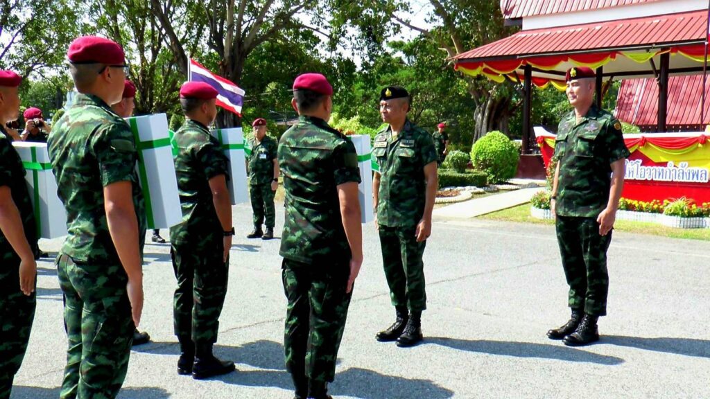 จากนั้น รองผู้บัญชาการทหารบก ได้เดินทางไปยัง ณ สนามสีหราชเดโช หน้ากองบัญชาการหน่วยบัญชาการสงครามพิเศษ เพื่อพบปะเยี่ยมเยียนกำลังพลหน่วยรบพิเศษ ส่งมอบของขวัญปีใหม่ จากกองทัพบก ให้แก่ผู้แทนหน่วย ซึ่งมีกำลังพลปฏิบัติราชการสนาม ตามแนวชายแดน ร่วมเป็นผู้แทนในการรับมอบ เพื่อส่งต่อให้แก่ทหารหน่วยรบพิเศษ ทั้งในที่ตั้งปกติ และ ผู้ซึ่งปฏิบัติภารกิจในการป้องกันประเทศตามแนวชายแดน เพื่อเป็นขวัญและกำลังใจแก่ทหารนักรบพิเศษทุกนาย ในการปฏิบัติงานในห่วงปีที่ผ่านมา