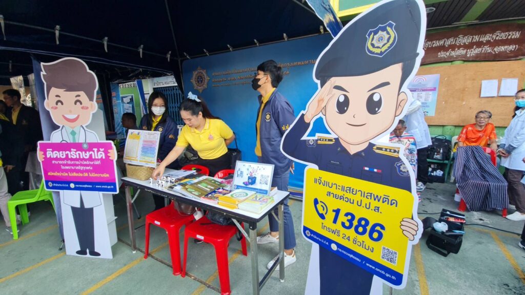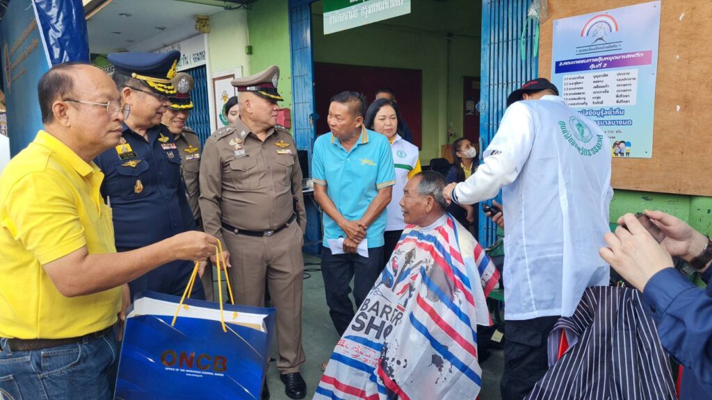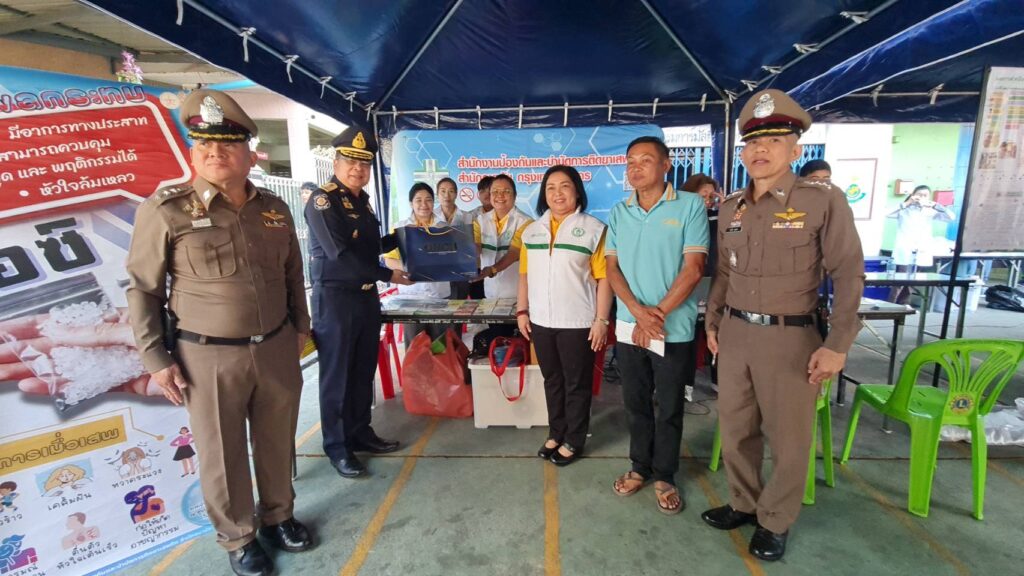 เมื่อเวลา 09.30 น.วันที่ 23 ธ.ค.พ.ต.อ.ภัสพงษ์ บุตรไทย รอง ผบก.น.8 พร้อมด้วย นายอำนาจ เหล่ากอที ผอ.ป.ป.ส.กทม., พ.ต.อ.สนชัย พูนผล ผกก.สน.บางมด พร้อมเจ้าหน้าที่ผู้แทน กทม., ป.ป.ส.กทม., ผู้แทนสำนักอนามัย กทม. และหน่วยงานที่เกี่ยวข้อง ร่วมกันลงพื้นที่ทำกิจกรรมรณรงค์ประชาสัมพันธ์สร้างการรับรู้ การเข้าใจให้แก่ประชาชนเพื่อป้องกันและแก้ไขปัญหายาเสพติดชุมยั่งยืน แก้ไขปัญหายาดสพติดในชุมชน ณ.ชุมชน มัสยิดนูรุ้ลยากีน ซอยสุขสวัสดิ์ 14 แขวงและเขตจอมทอง กทม. โดยมีชาวบ้านที่อาศัยในชุมชนกว่า 30 คน เข้าร่วมกิจกรรม นอกจากนี้ยังมีการจัดกิจกรรมให้บริการตัดผม-เสริมสวยฟรี ของโครงการฝึกอาชีพ สำนักงานเขตบางคอแหลม